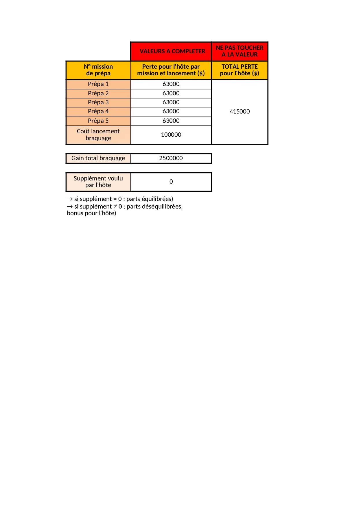 supplement equilibrees perte voulu desequilibrees total braquage parts valeurs prepa braqueur mission toucher difference lancement