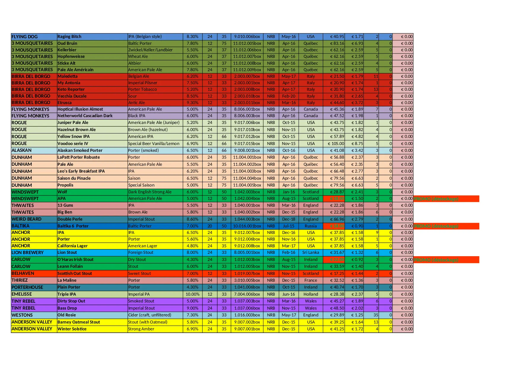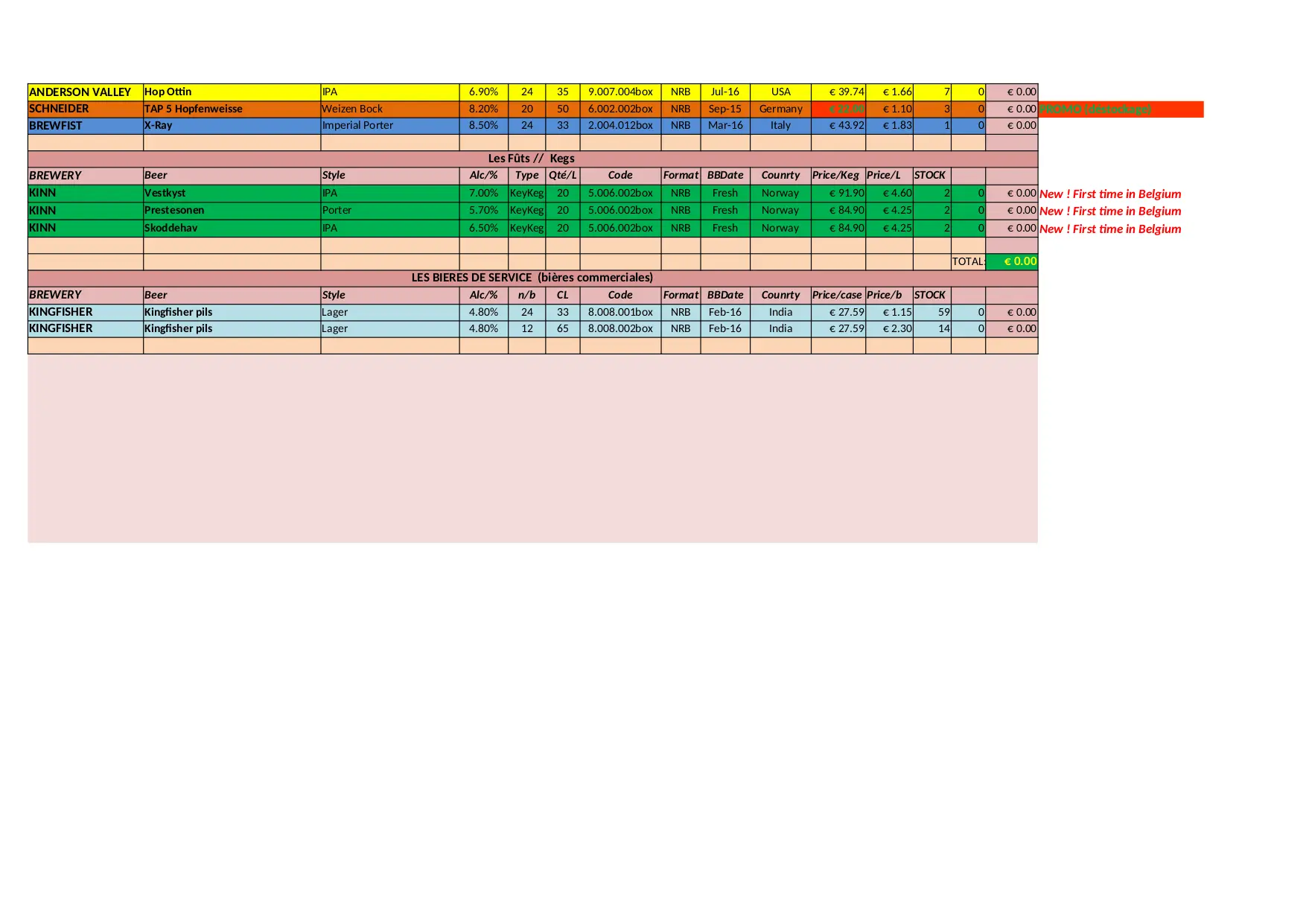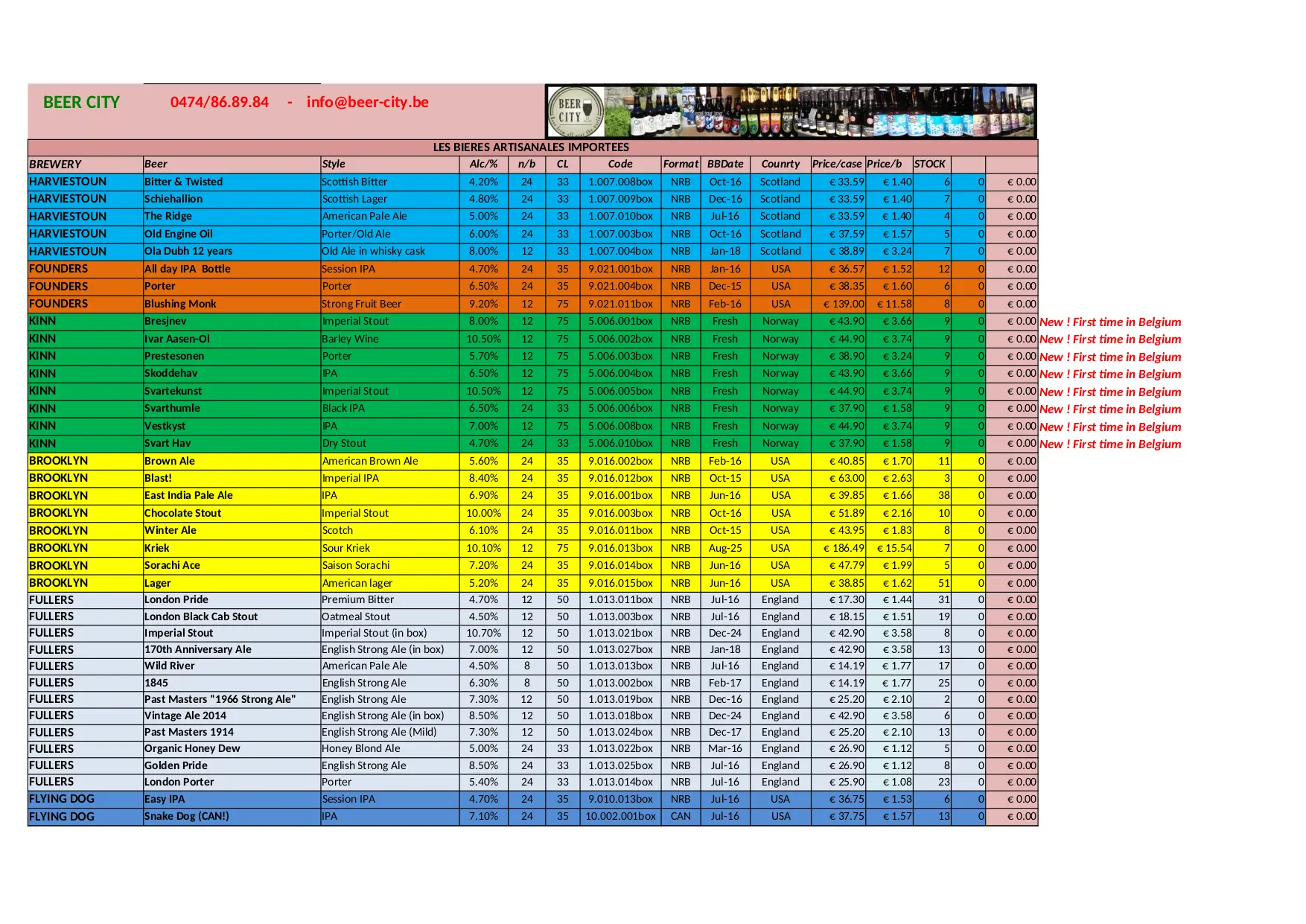 BEER CITY Stock Liste (XLSX)