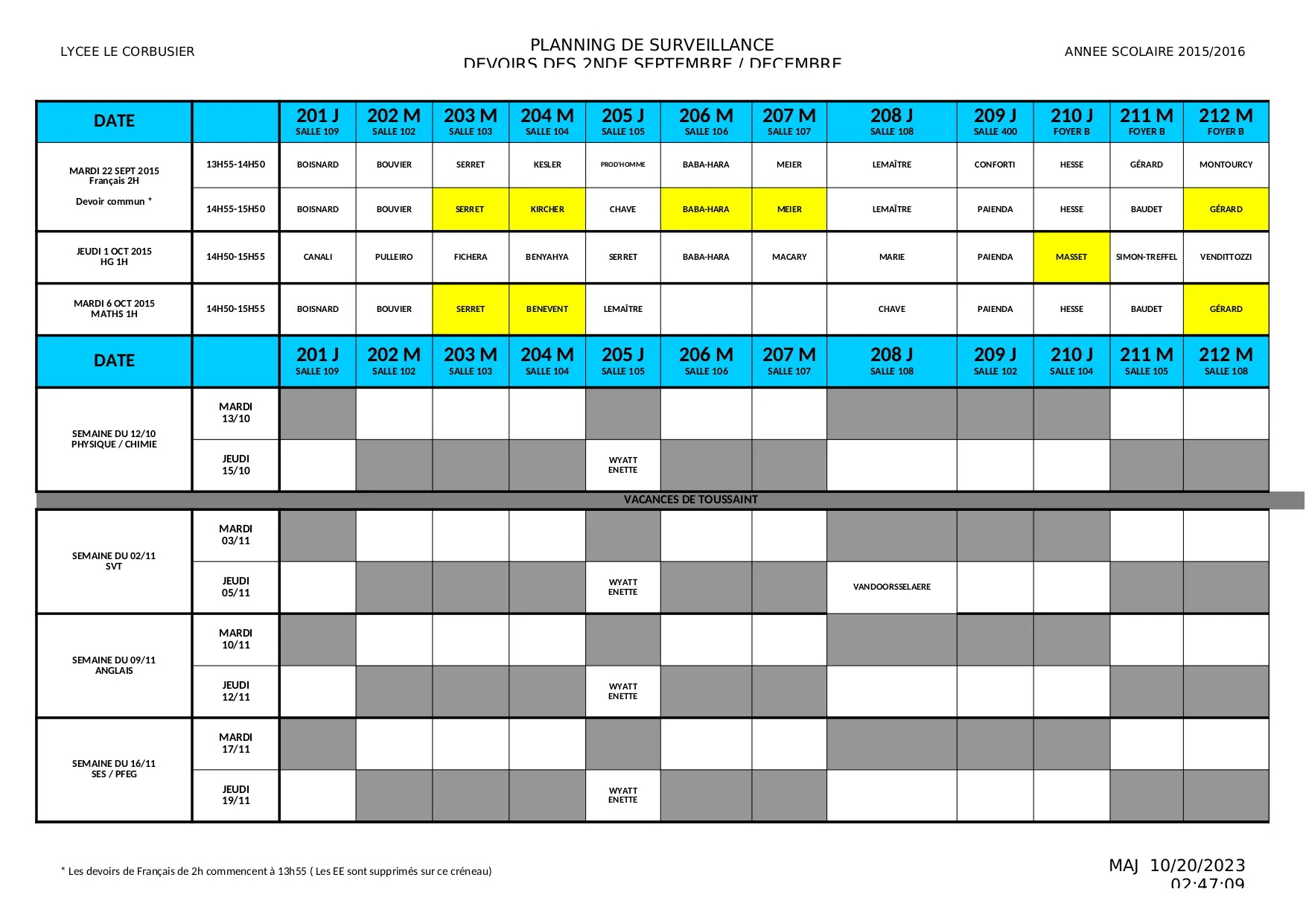 planning surveillance sept-oct-nov-dec 2nde (XLS)