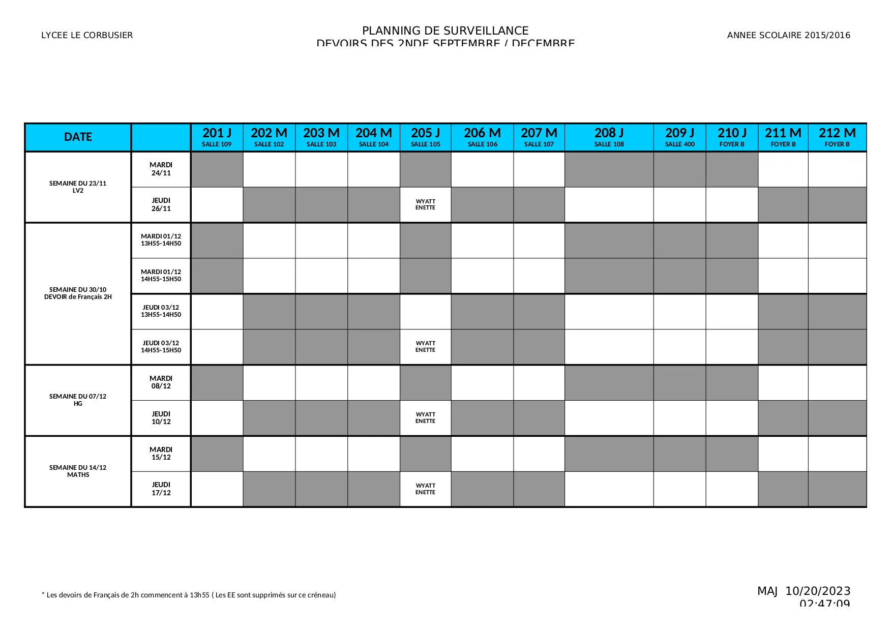 salle foyer semaine enette jeudi mardi wyatt 14h50 hesse serret 15h50 boisnard gerard bouvier 13h55