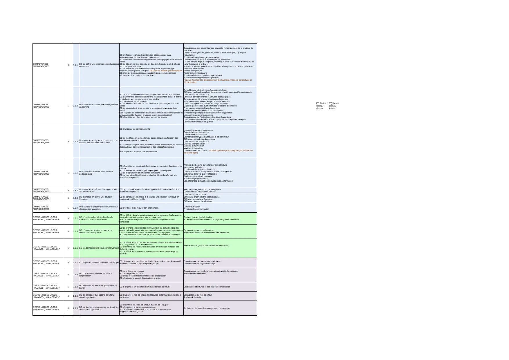 principes organisation connaissance publics gestion pedagogiques bilan differents evaluation ressources actions technique capable competences techniques