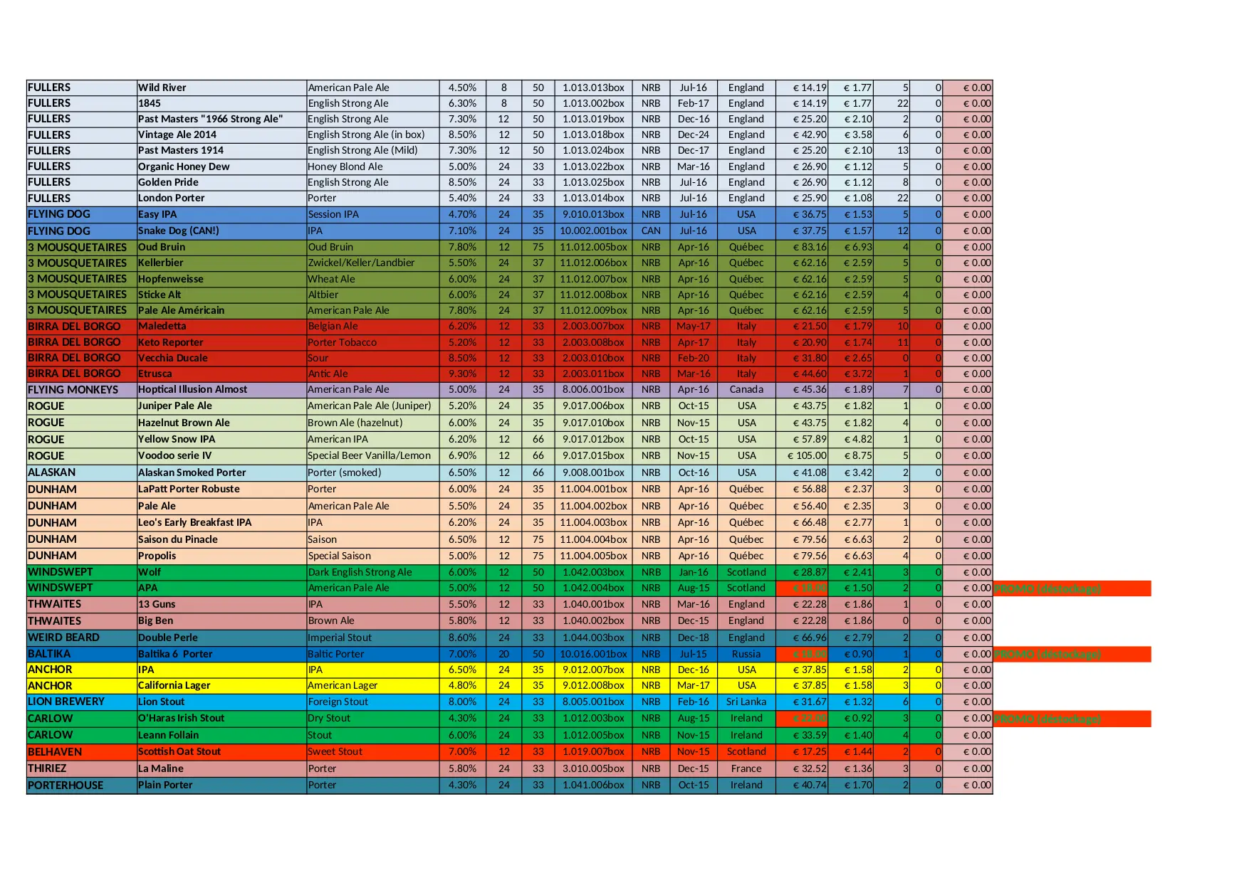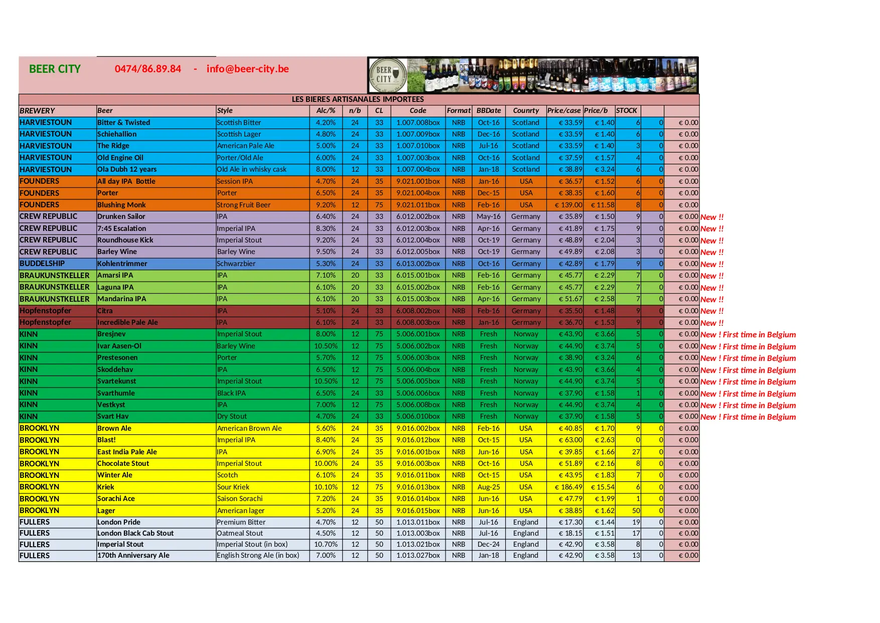 BEER CITY Stock Liste (XLSX)