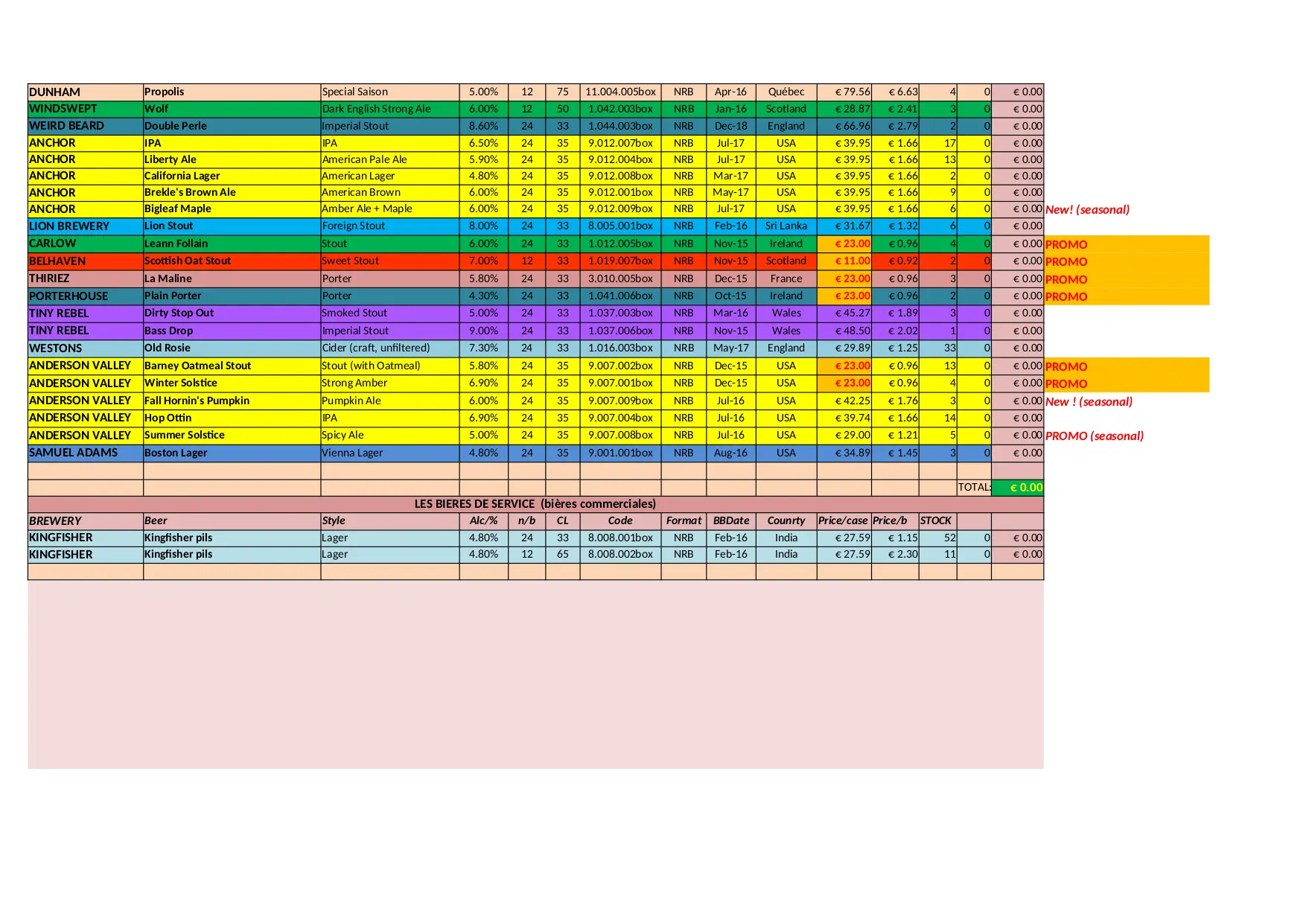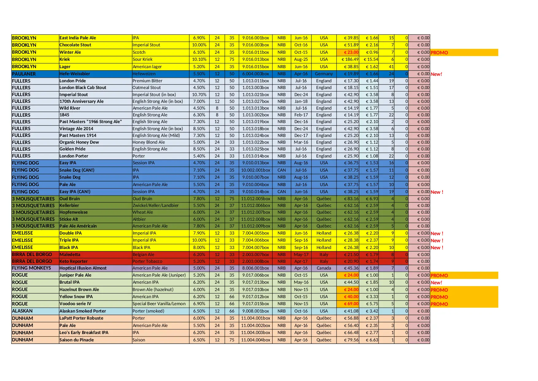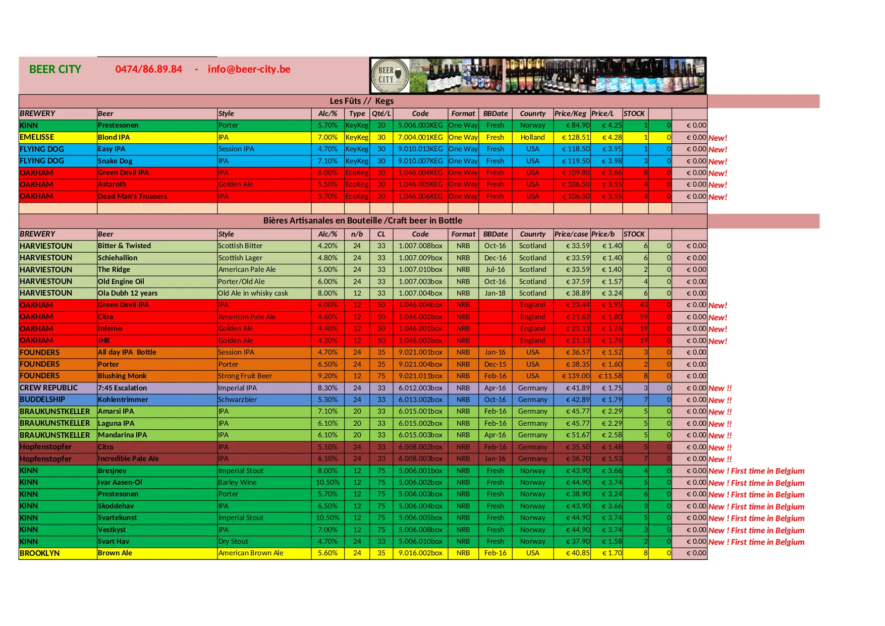 BEER CITY Stock Liste (XLSX)