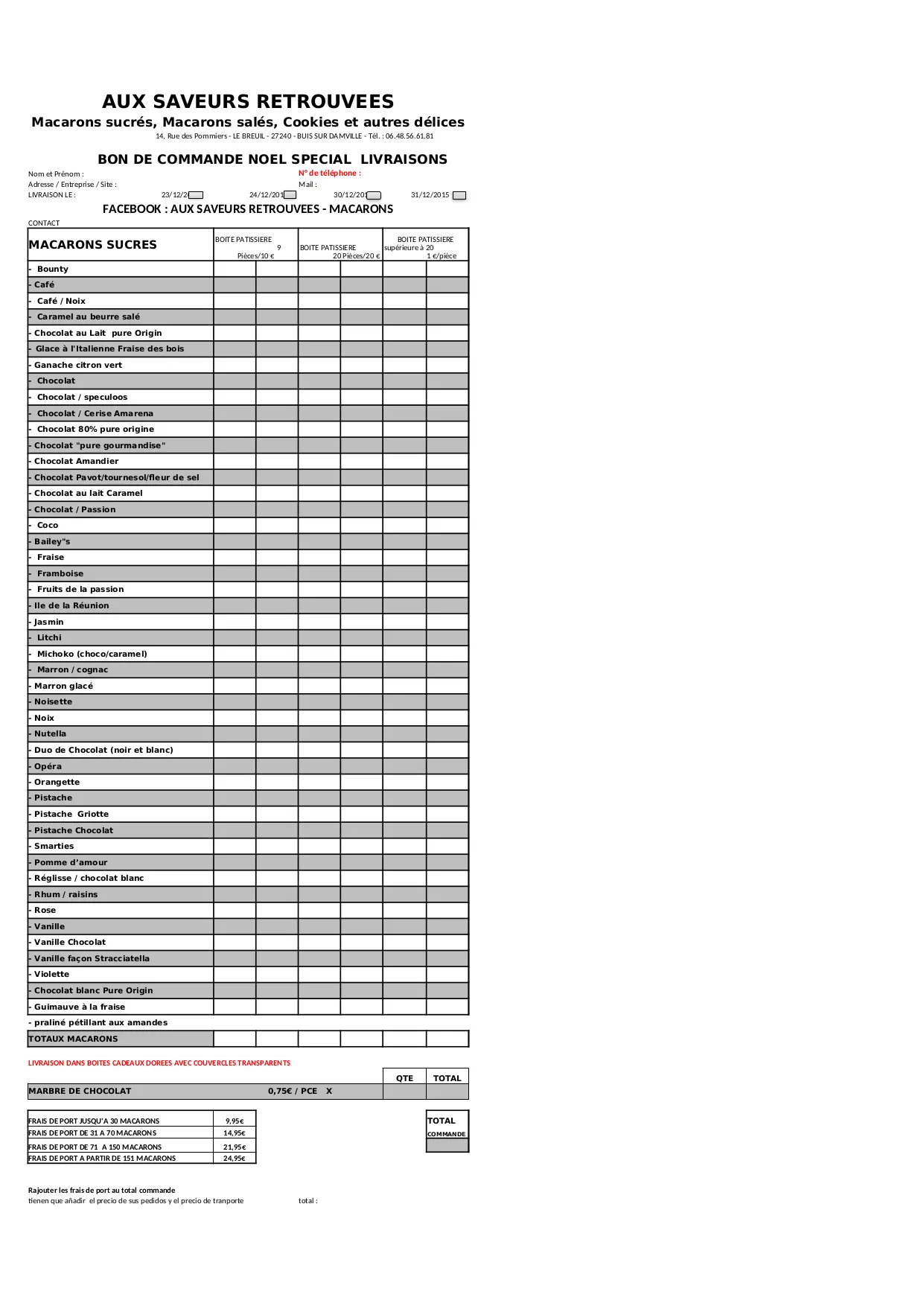 BONDECOMMANDE NOEL SPECIAL LIVRAISONS 2015 (XLSX)