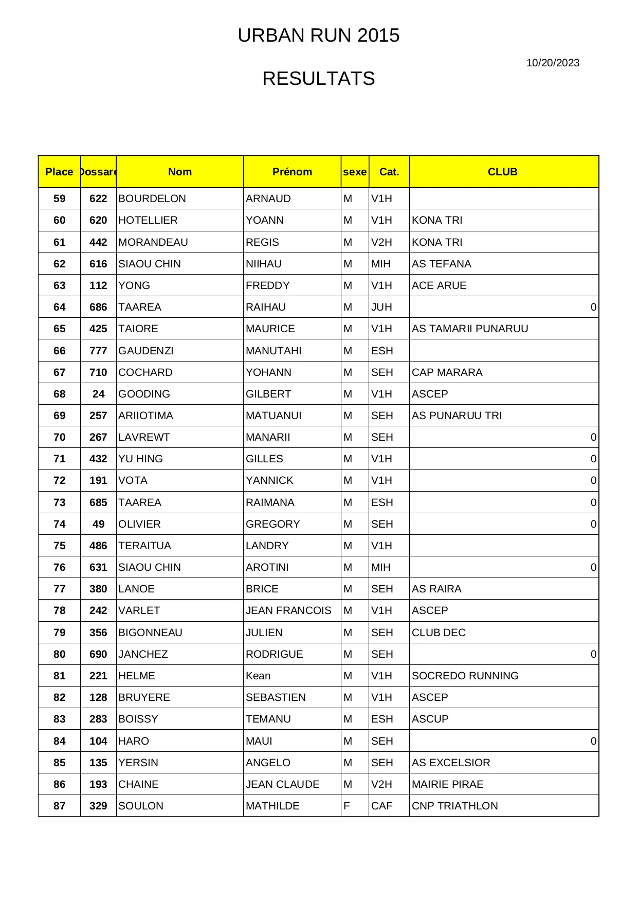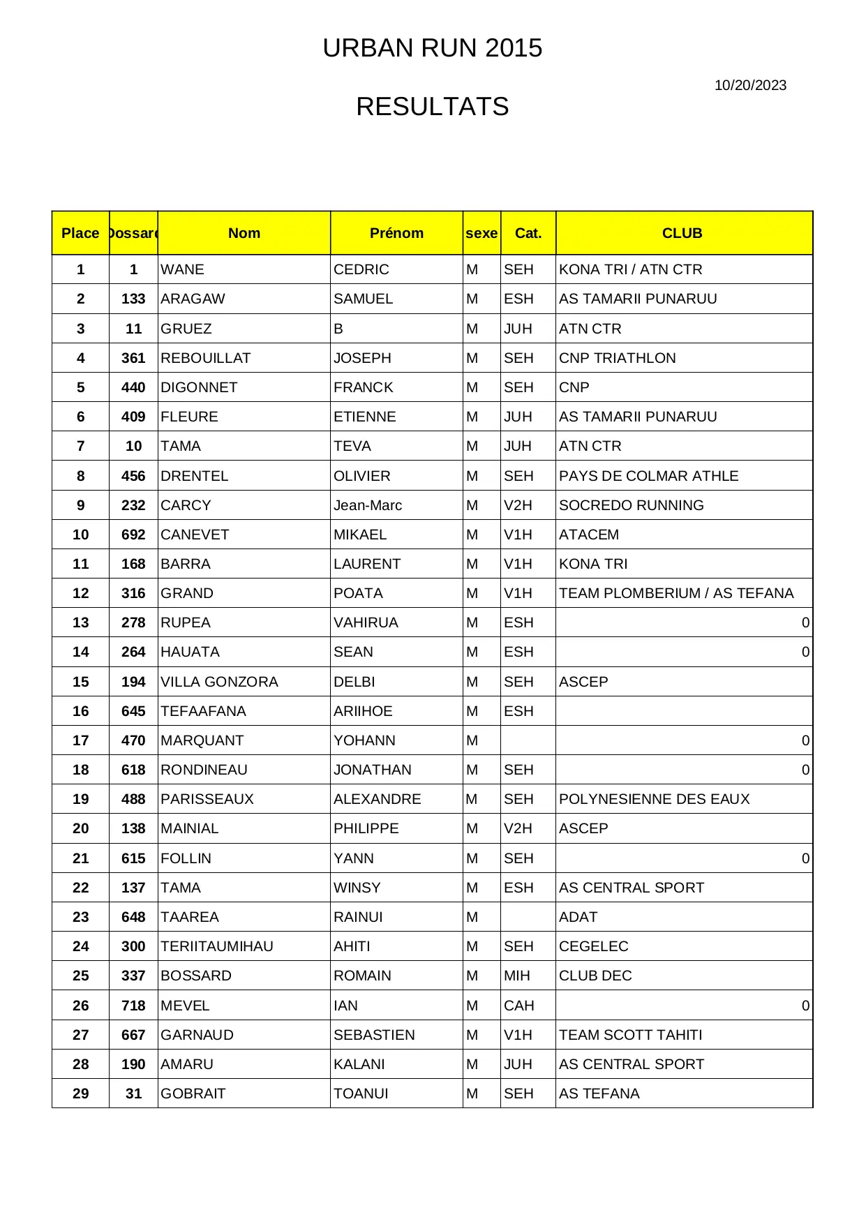 Resultat Presse URBAN RUN 2015-1 (XLS)