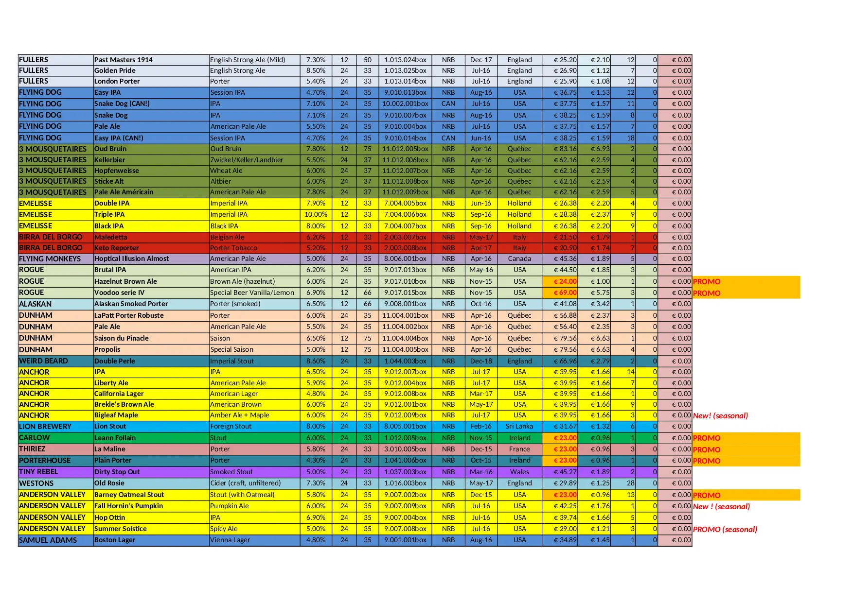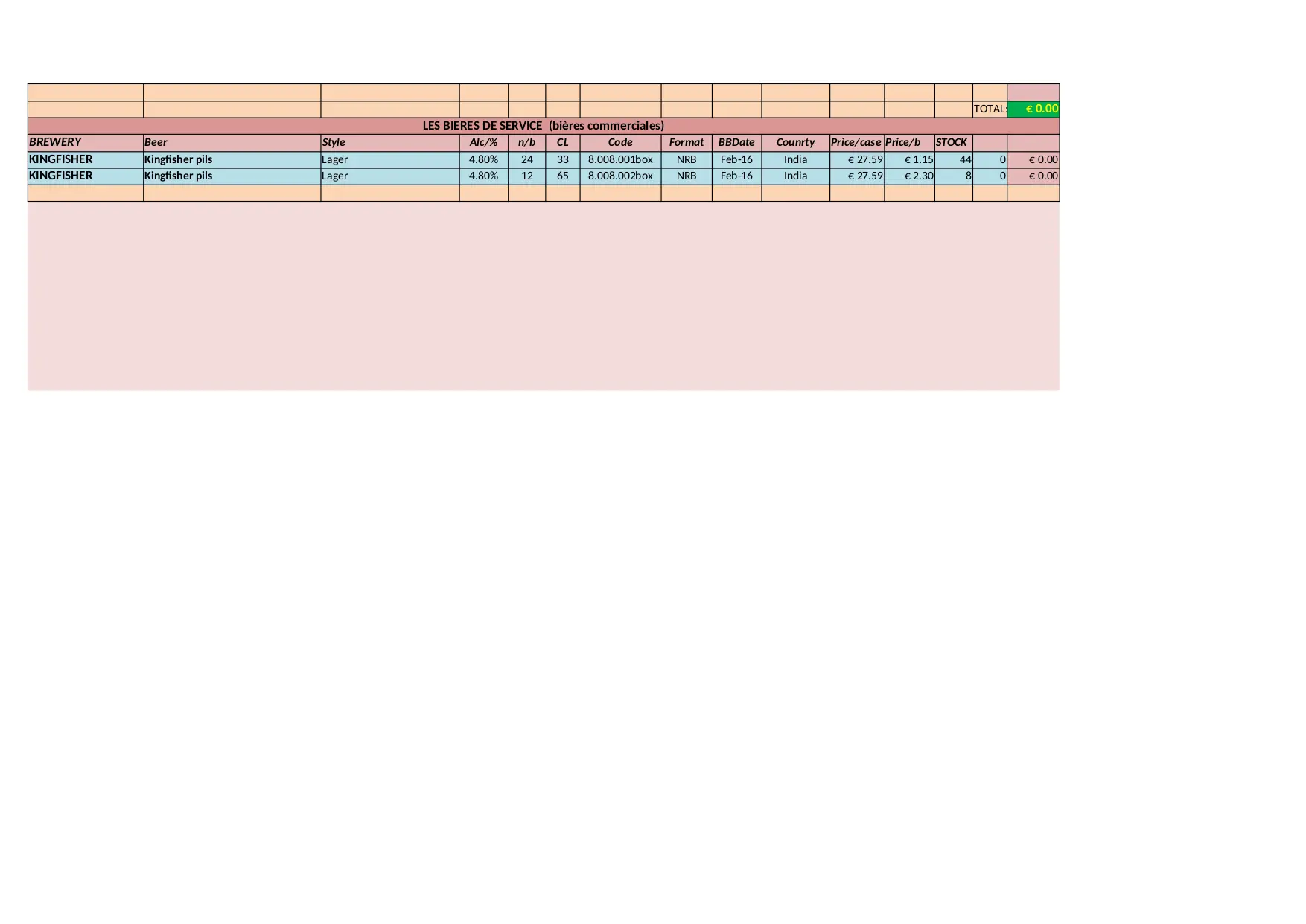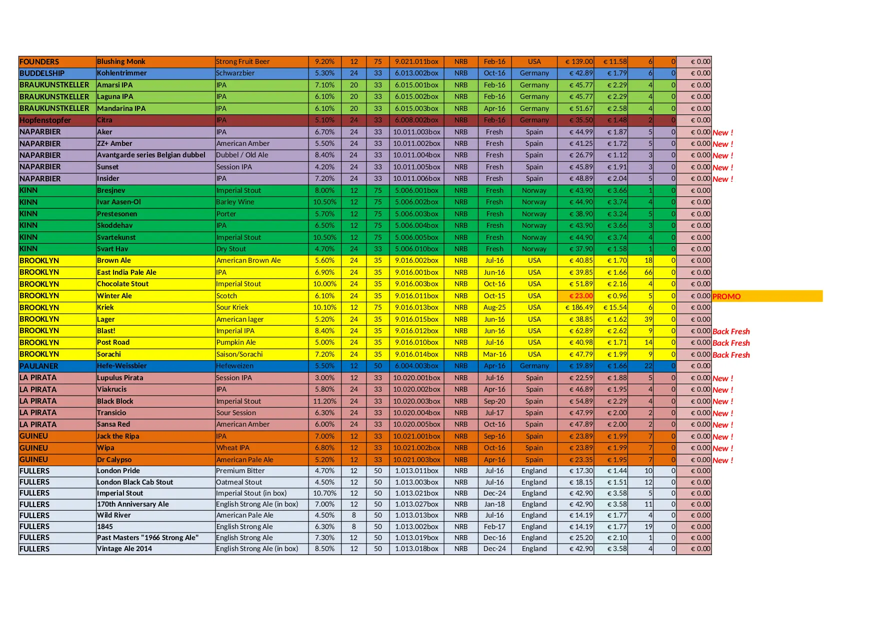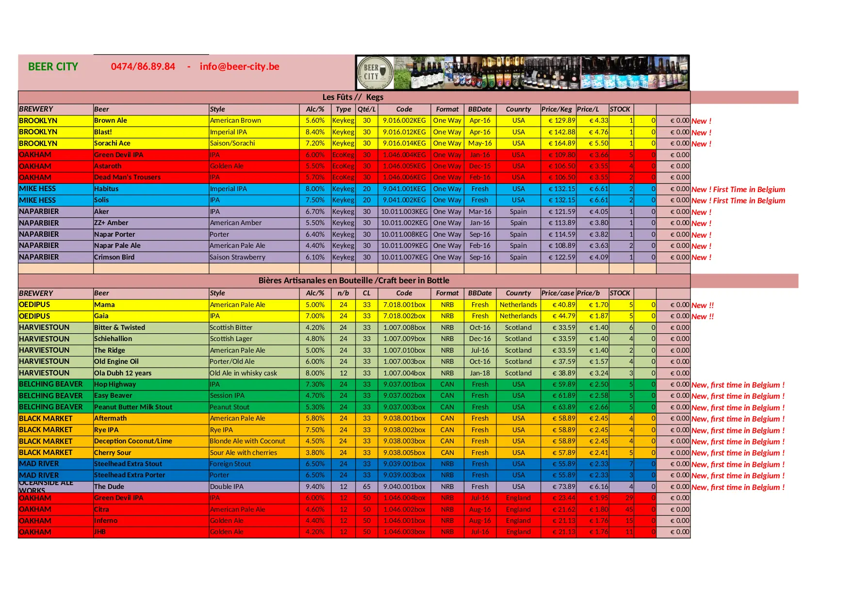 BEER CITY Stock Liste (XLSX)