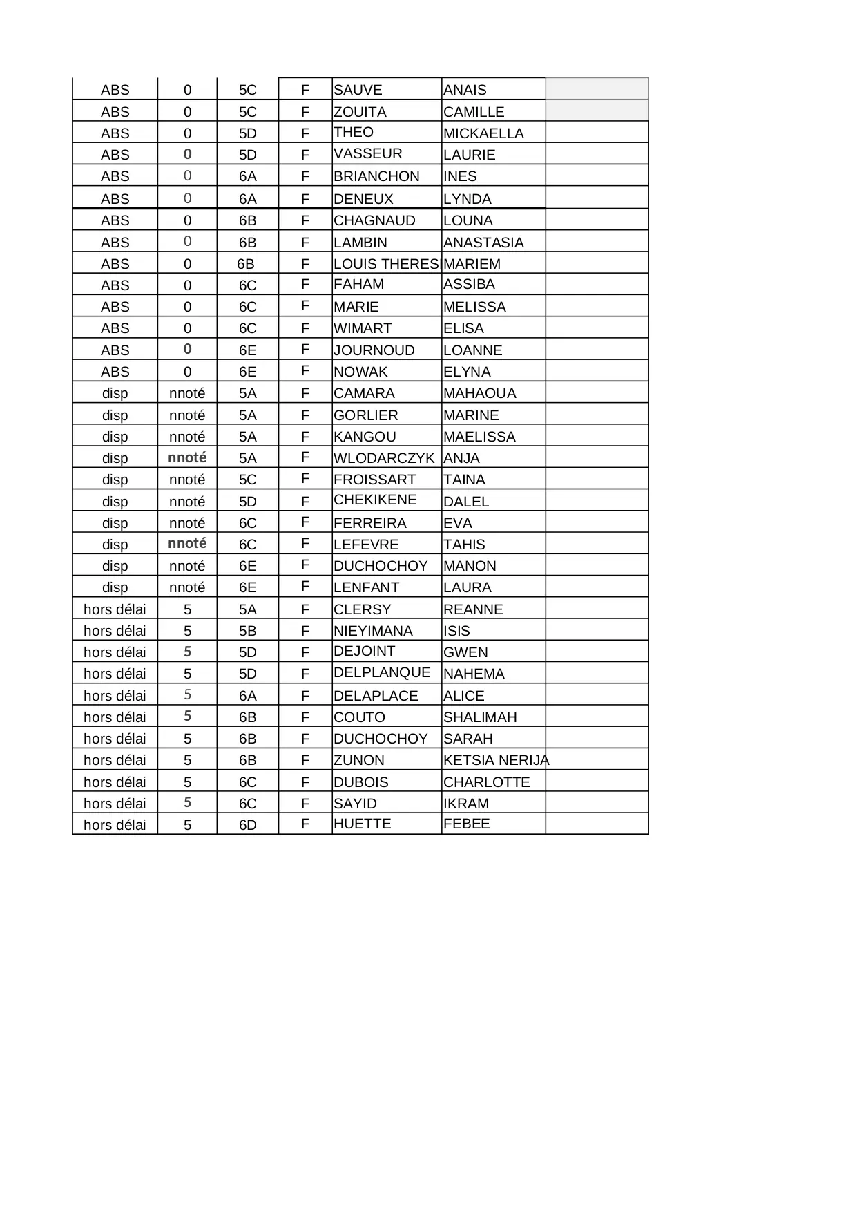 leane nowak absents louise loanne delai chloe caron elisa amelie nnote marie false maeva charlotte