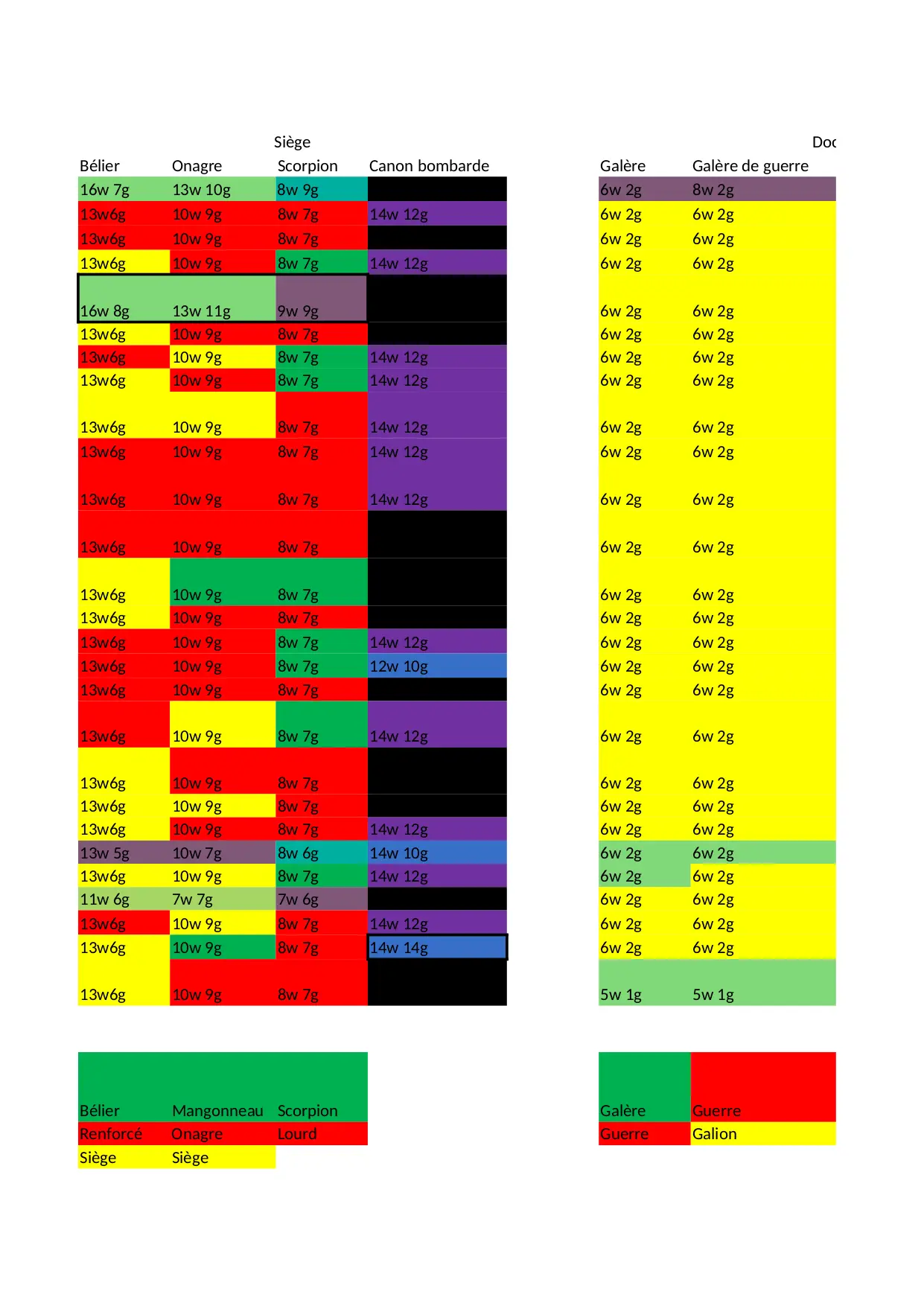galere galion casernes siege vitesse attaque archers ecuries canon elite calcule archer bonus 13w6g guerre
