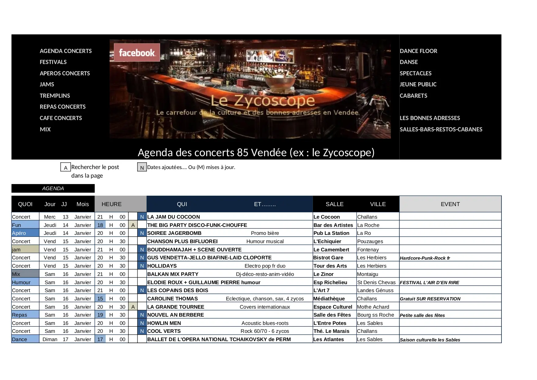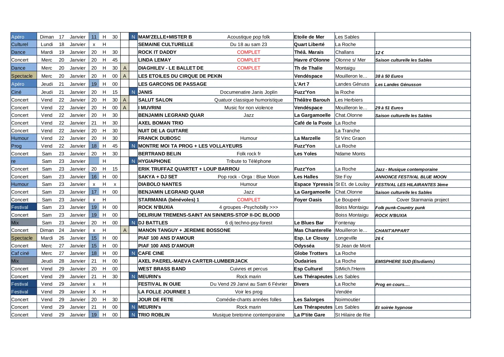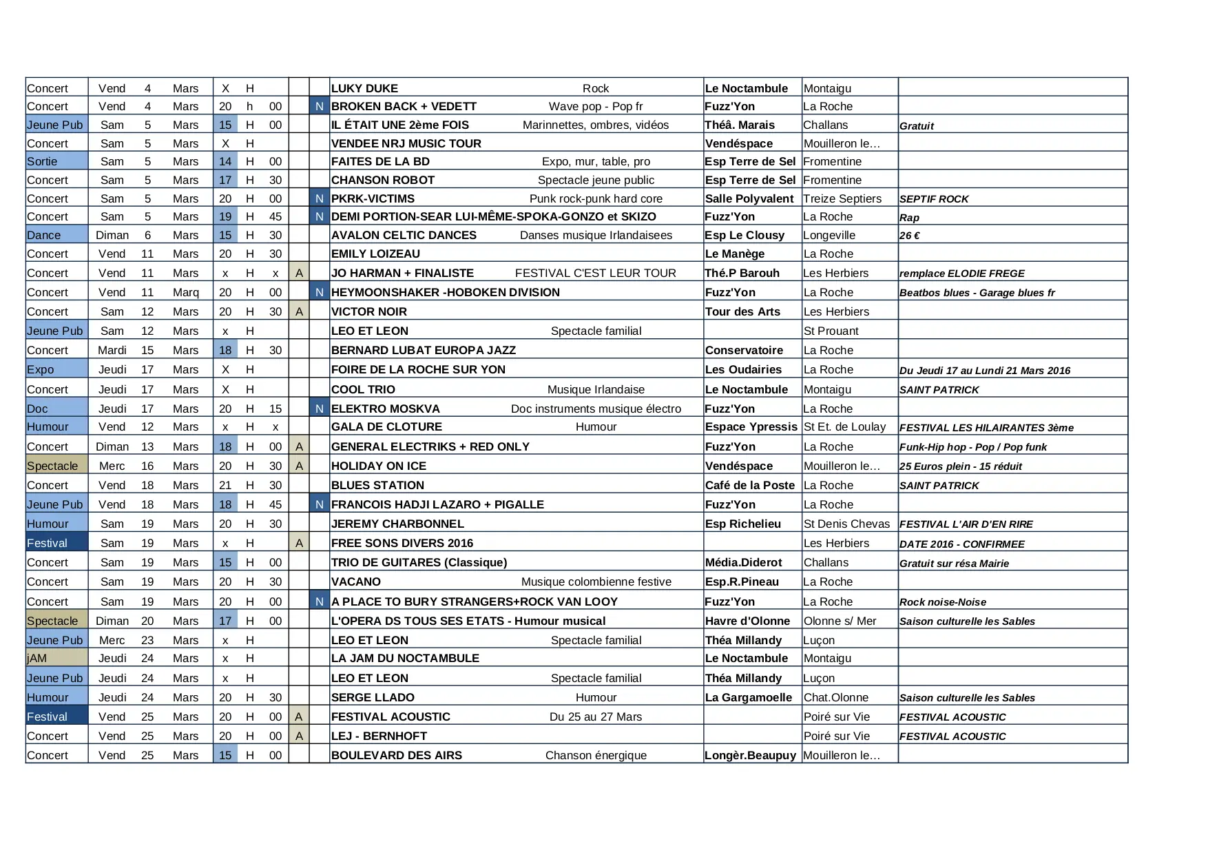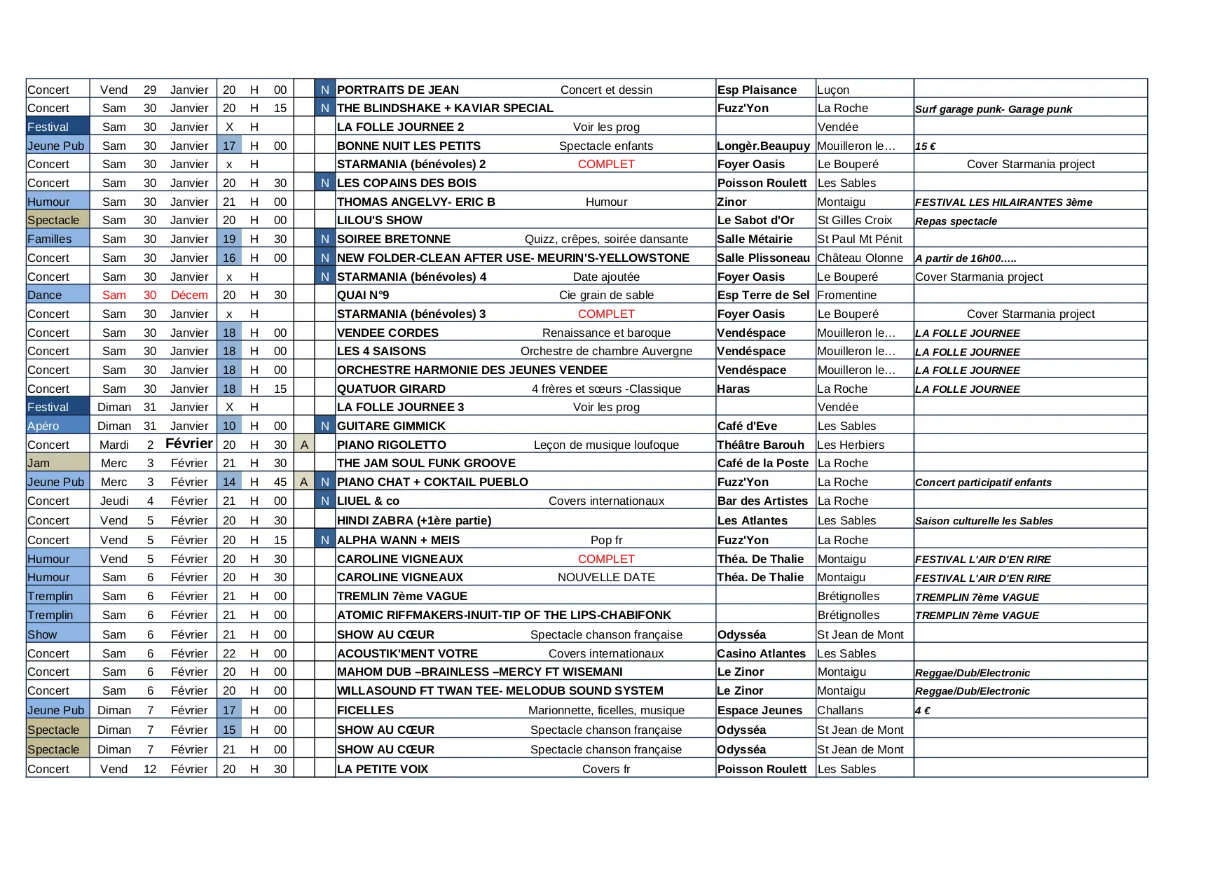 agenda des concerts 85 vendée TOTAL JANV 2016 (XLSX)