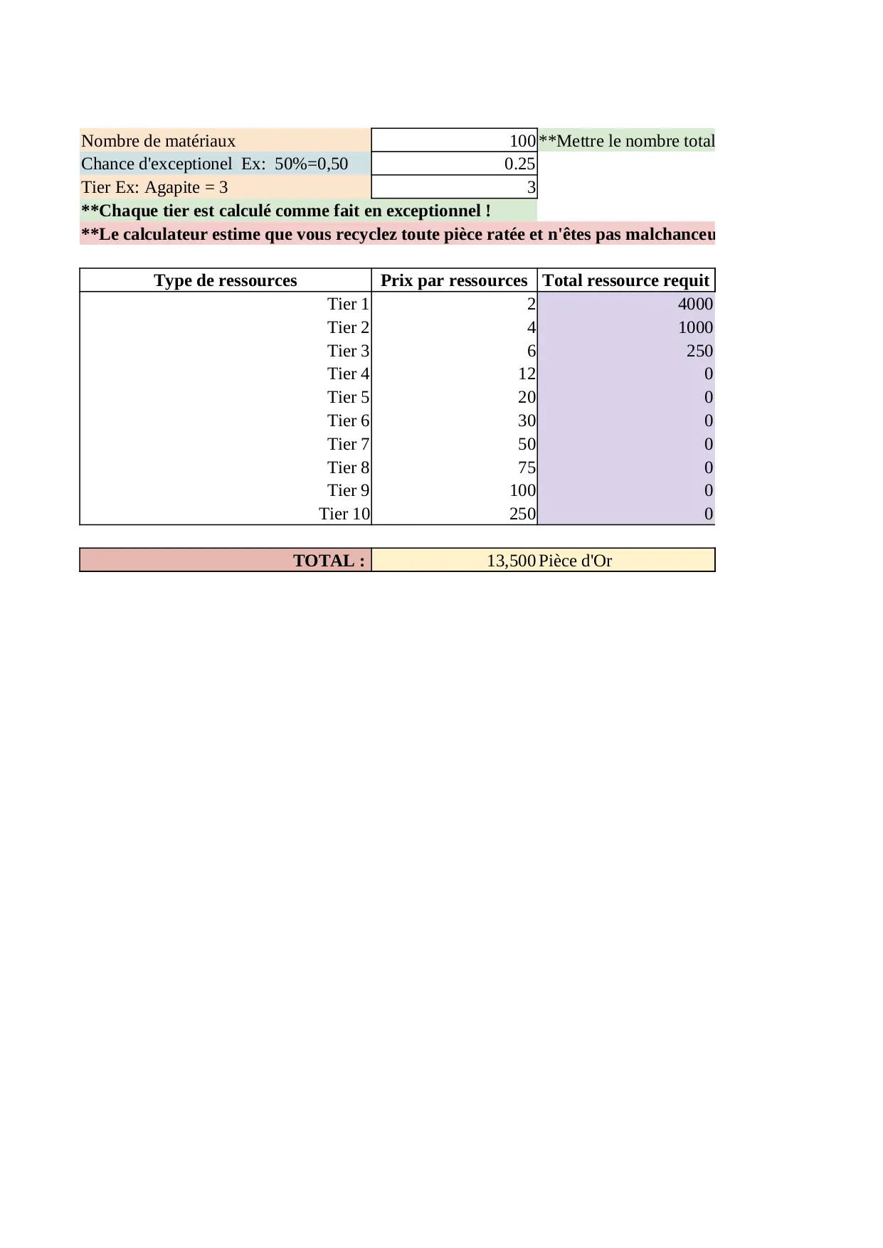 ressource exceptionnel calculateur total toute materiaux chanceux recyclez ratee estime ressources agapite nombre calcule malchanceux