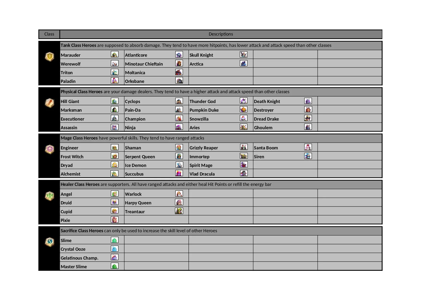 knight queen classes slime speed attacks attack other heroes ranged immortep succubus class damage alchemist