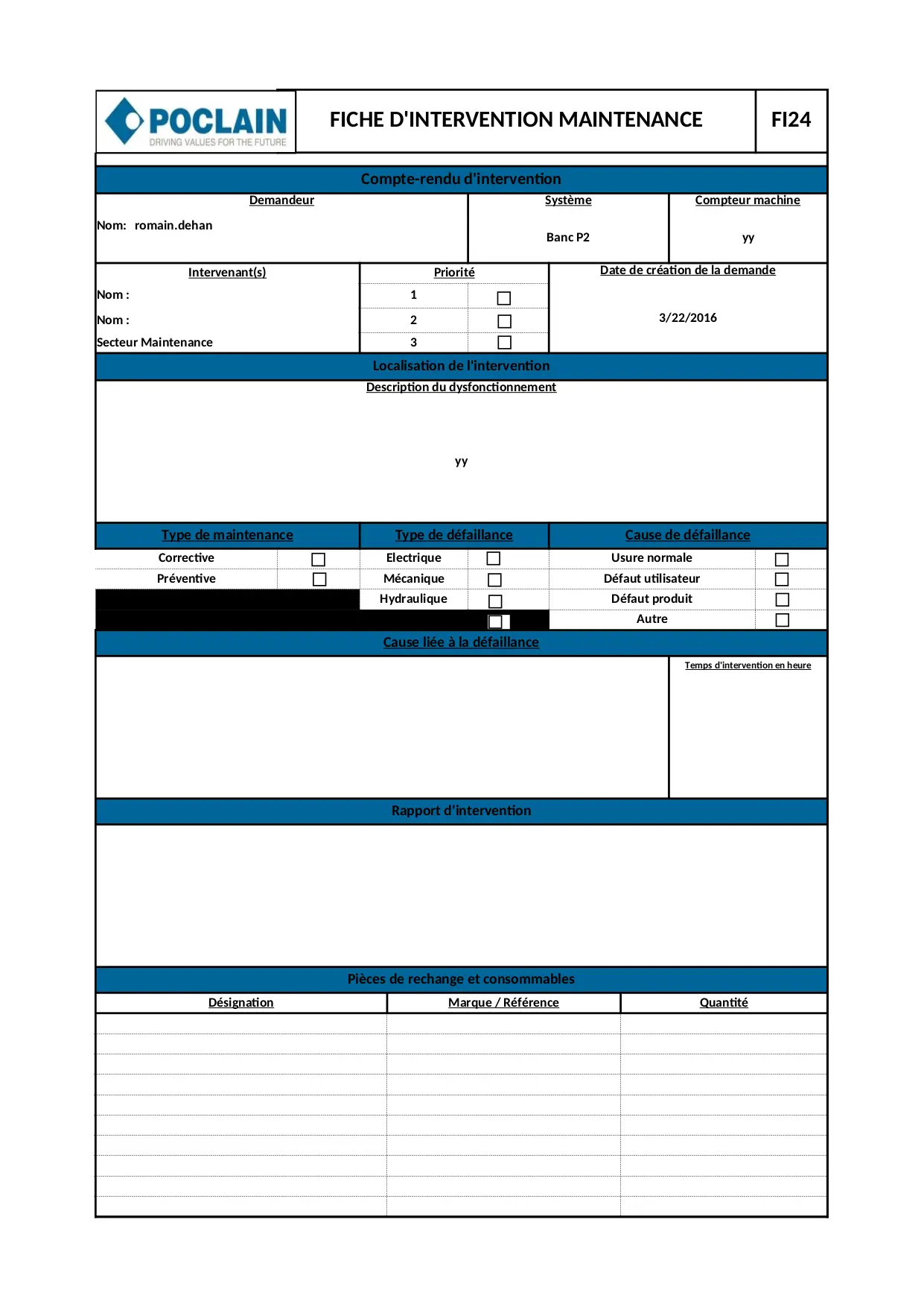 Archivage fiche d'intervention maintenance test (XLSM)