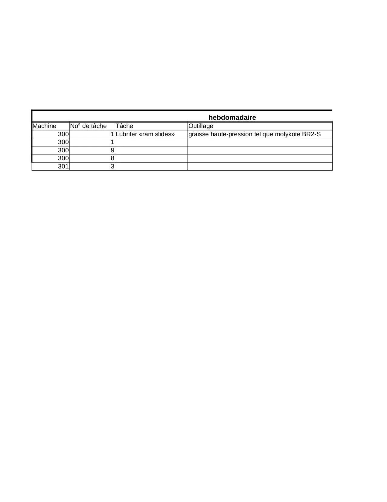 molykote graisse temps lubrifer quotidienne pression haute doublon hebdomadaire machine slides outillage tache estime