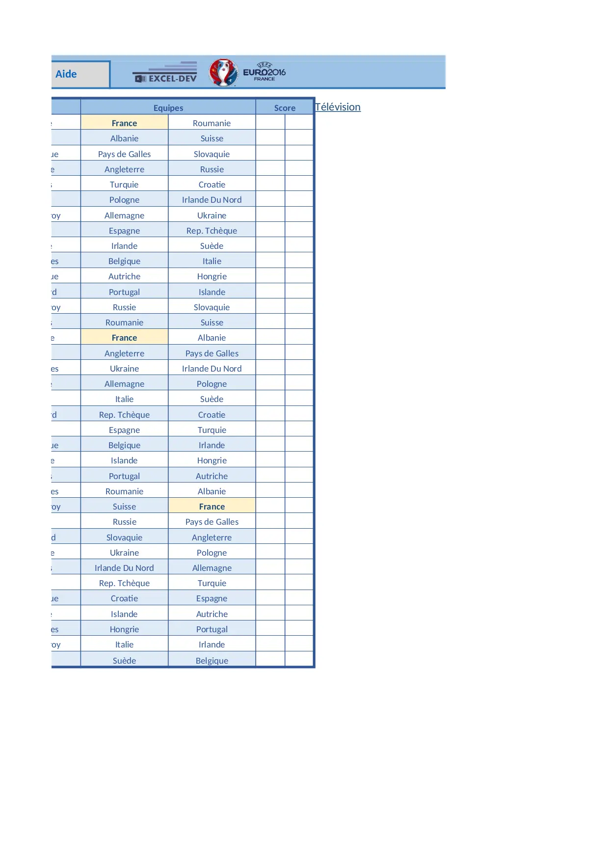 Euro 2016 (XLSX)