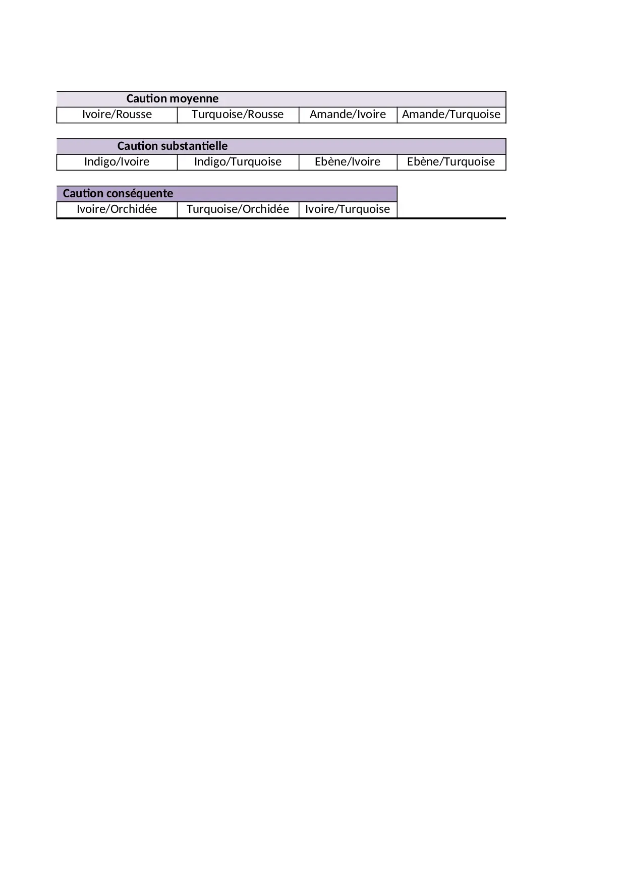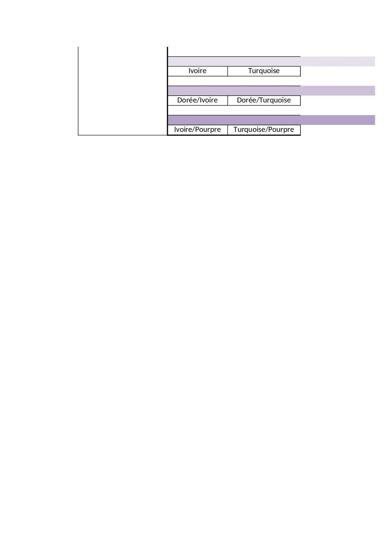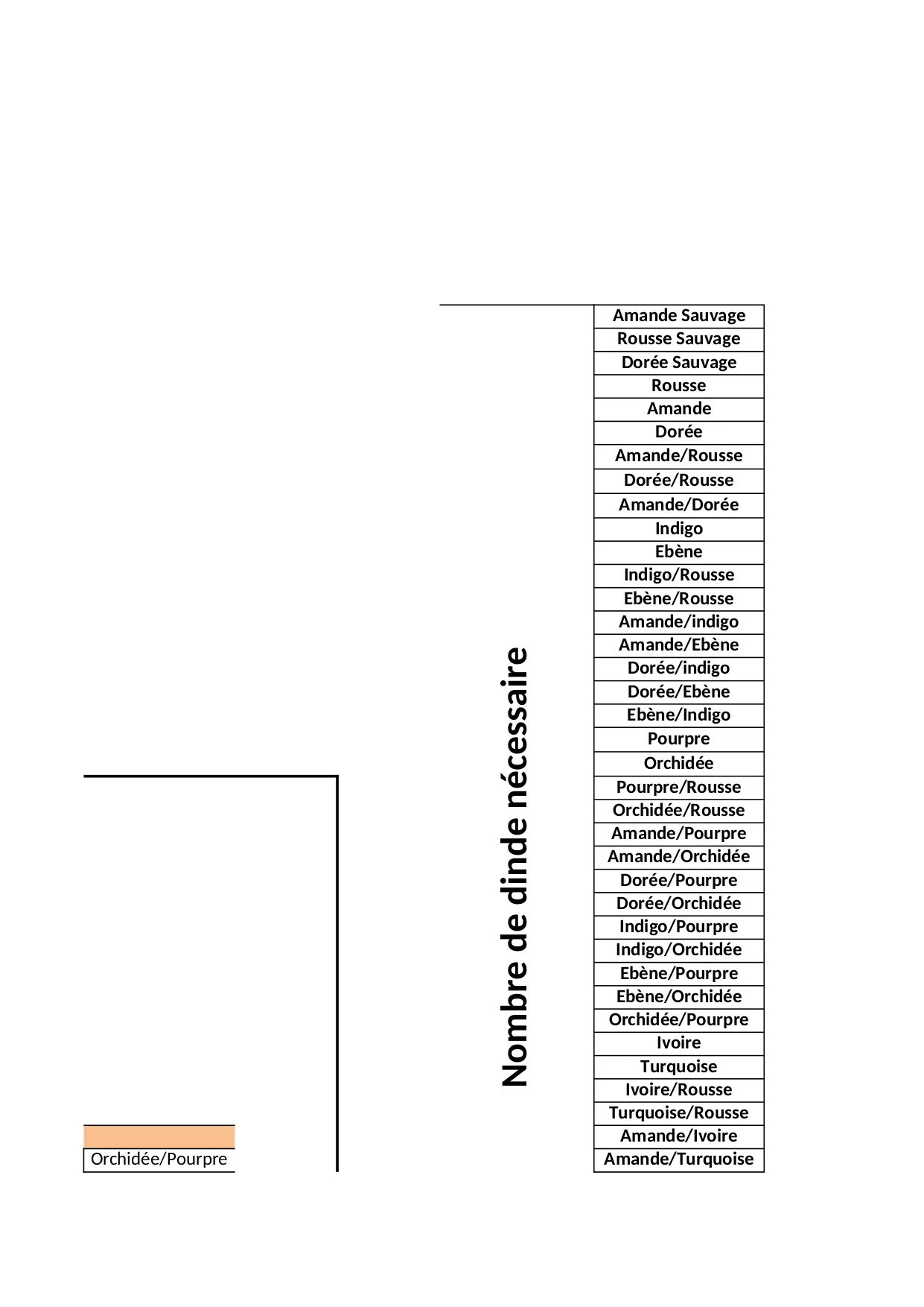 rousse ivoire turquoise amande quaternaire alitons sauvage ebene false pourpre nombre orchidee caution doree indigo