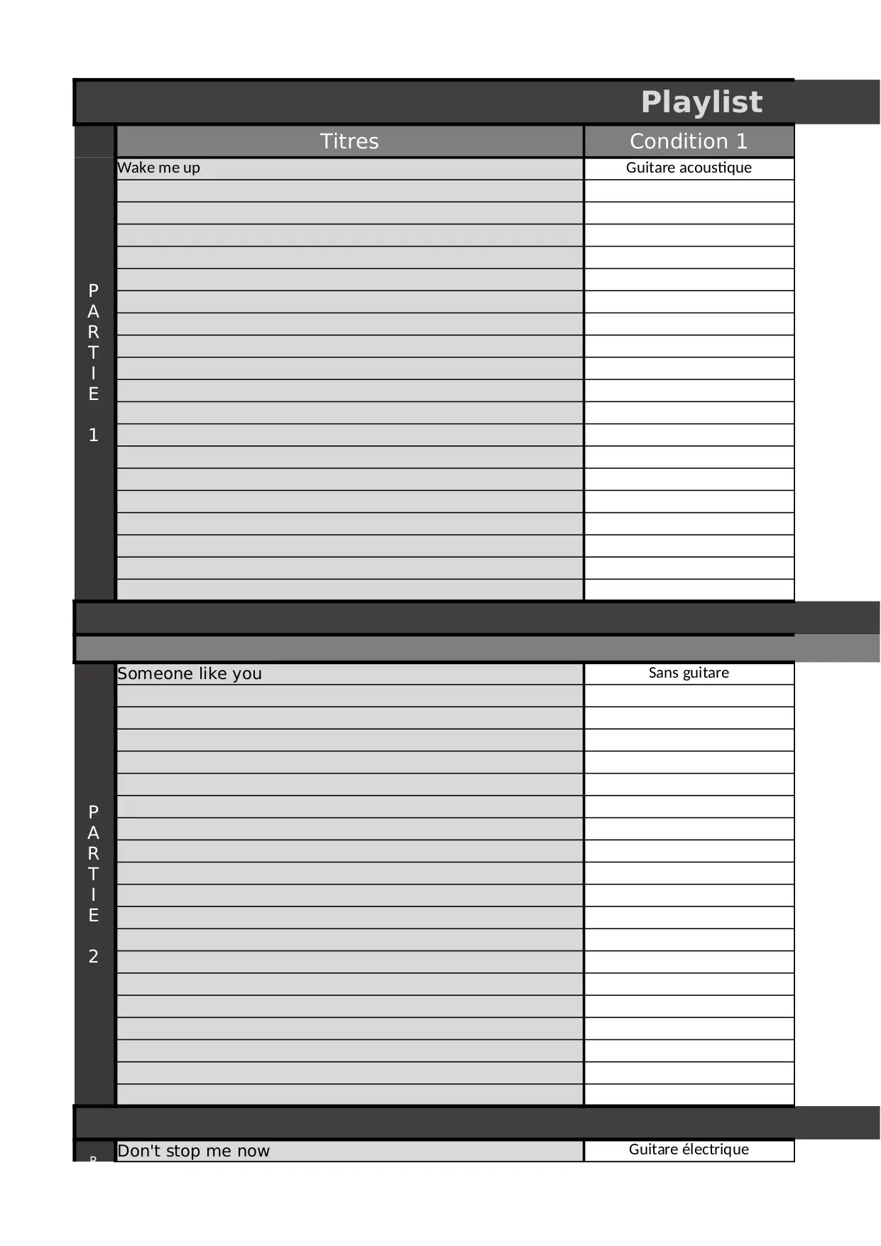 playlist guitare entracte someone duree titres chanteuse total electrique rythmee chanteur condition partie rappel acoustique