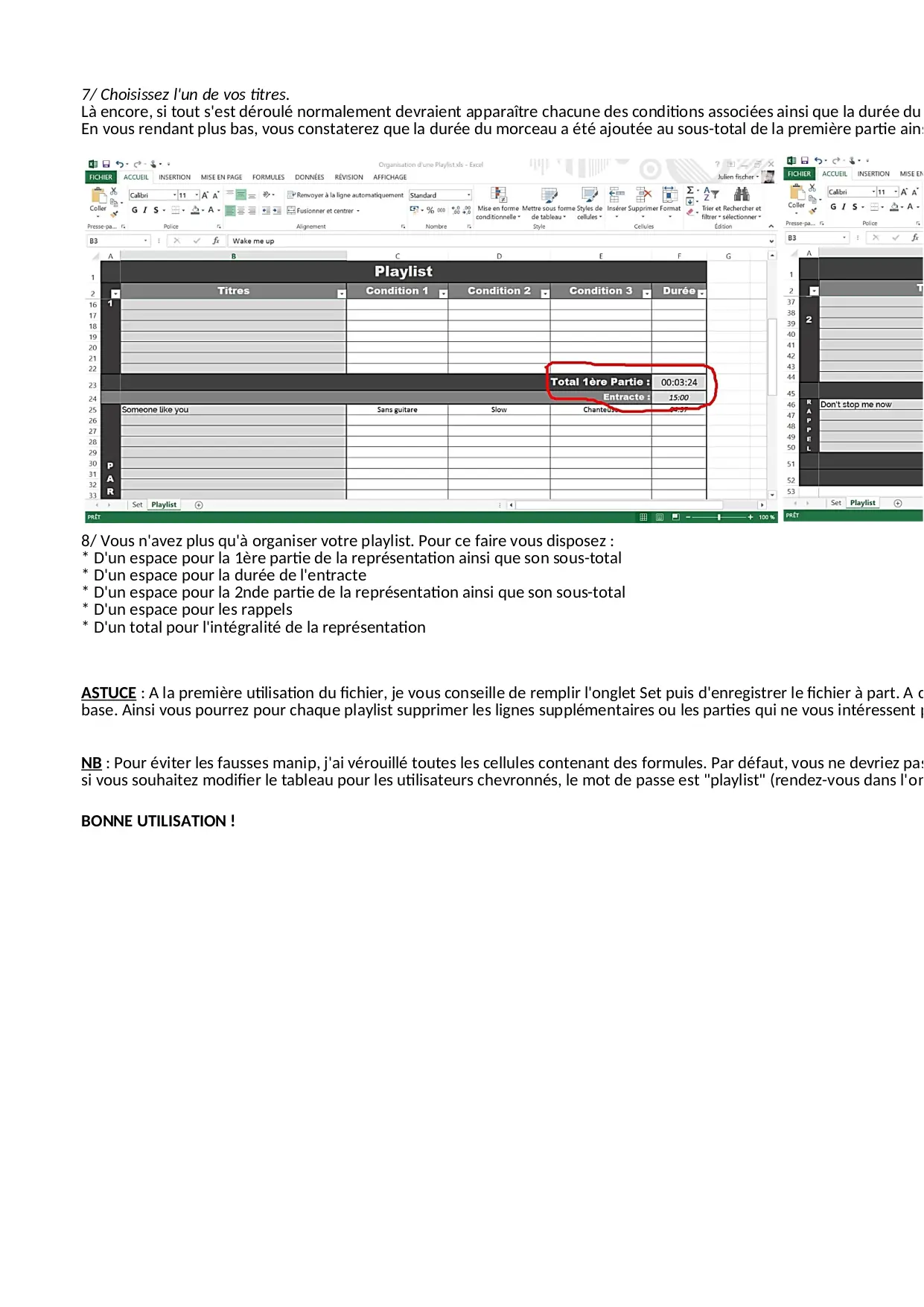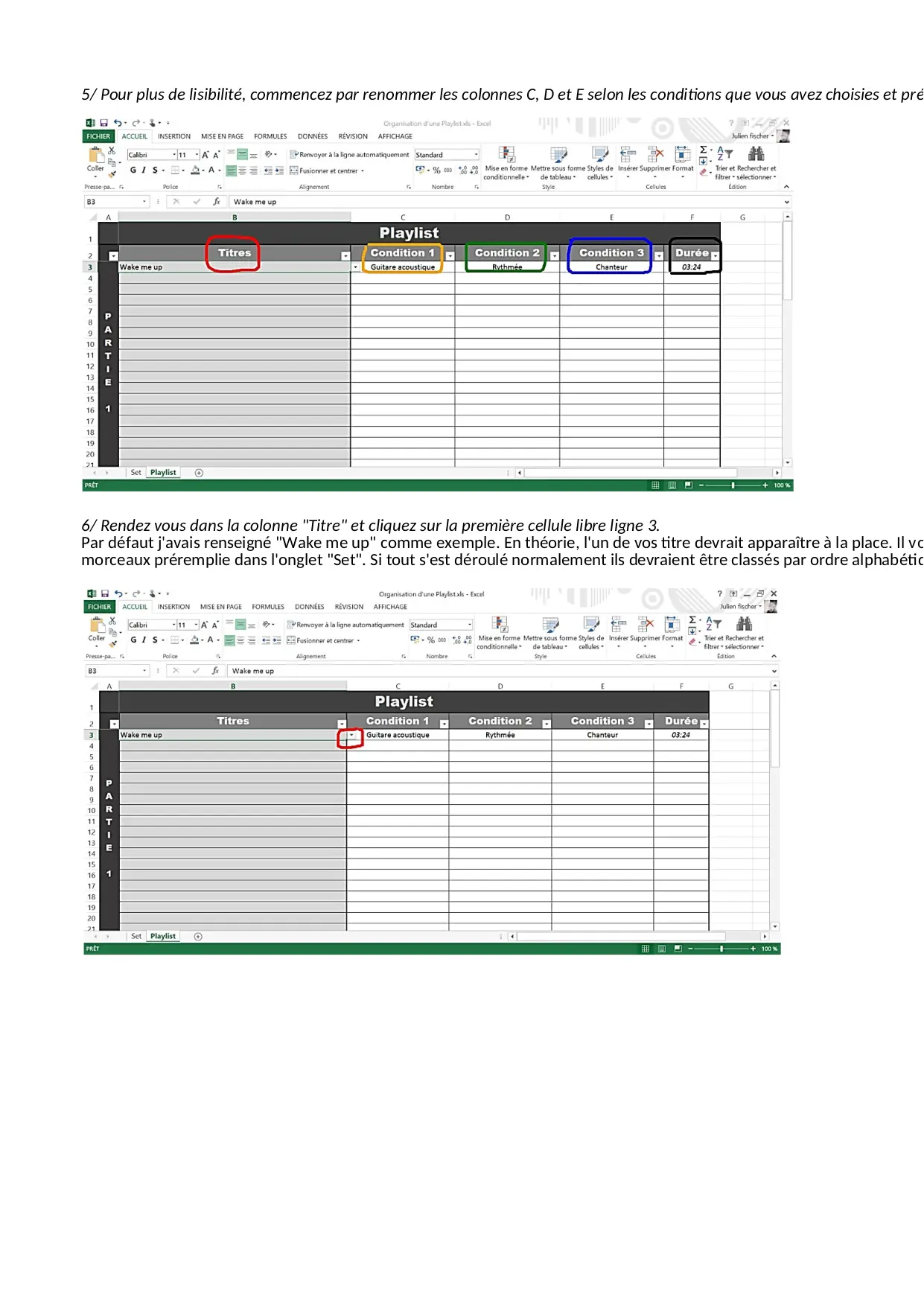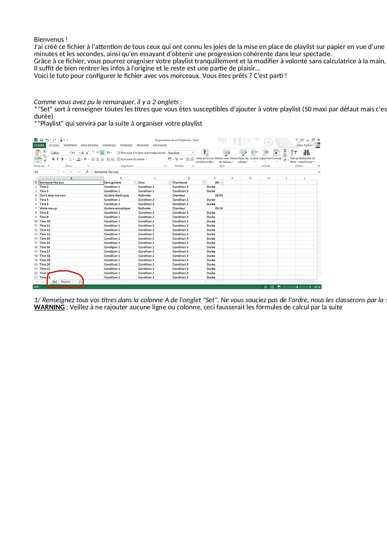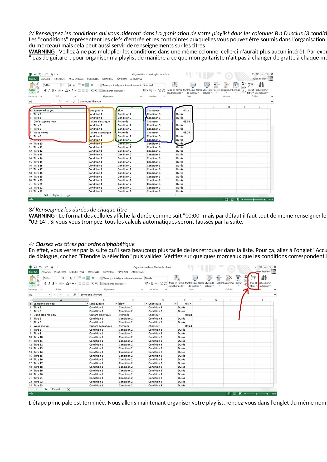 Organisation d'une Playlist (XLS)