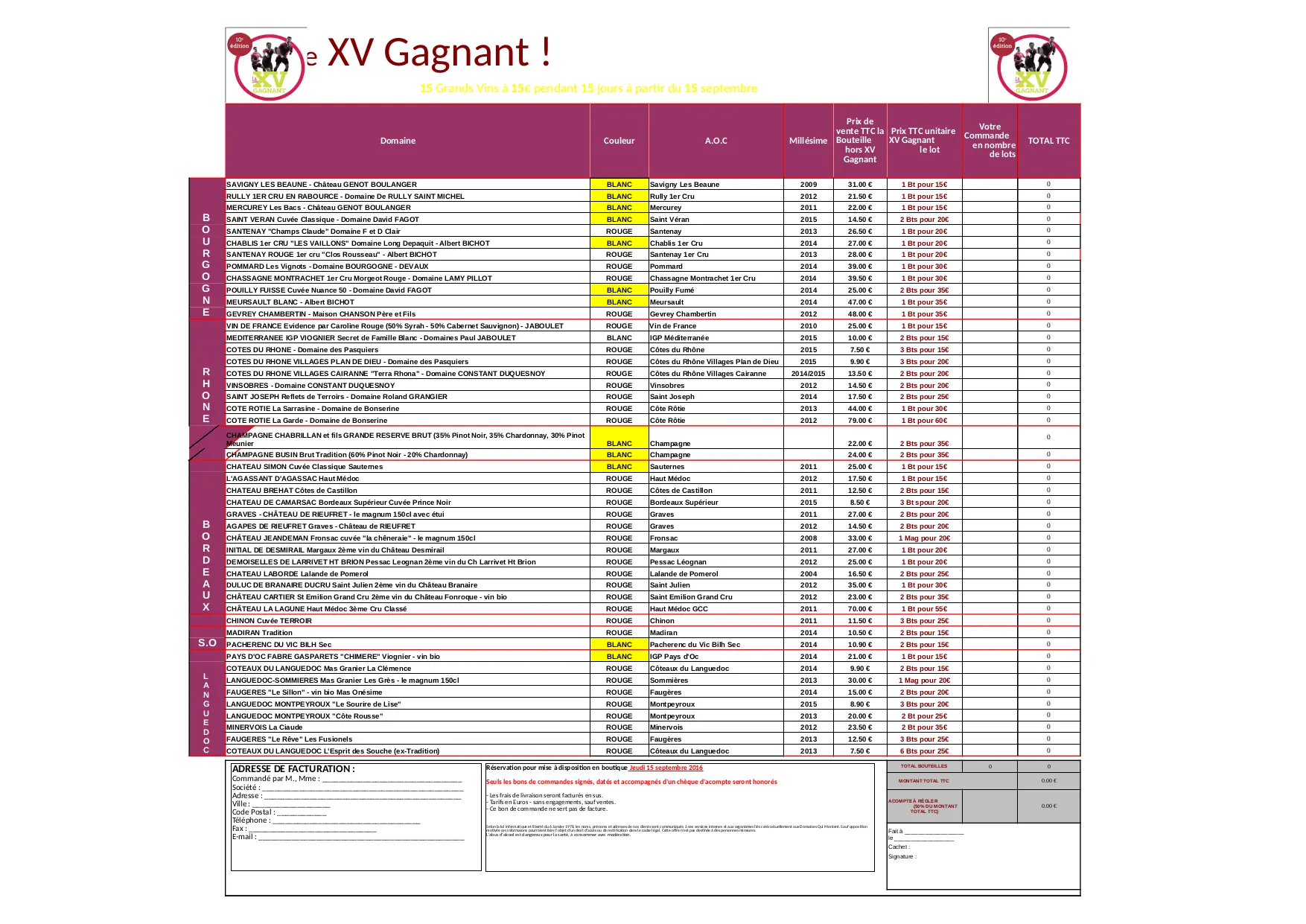 Bon de Commande FAV CLIENTS 2016 (XLS)