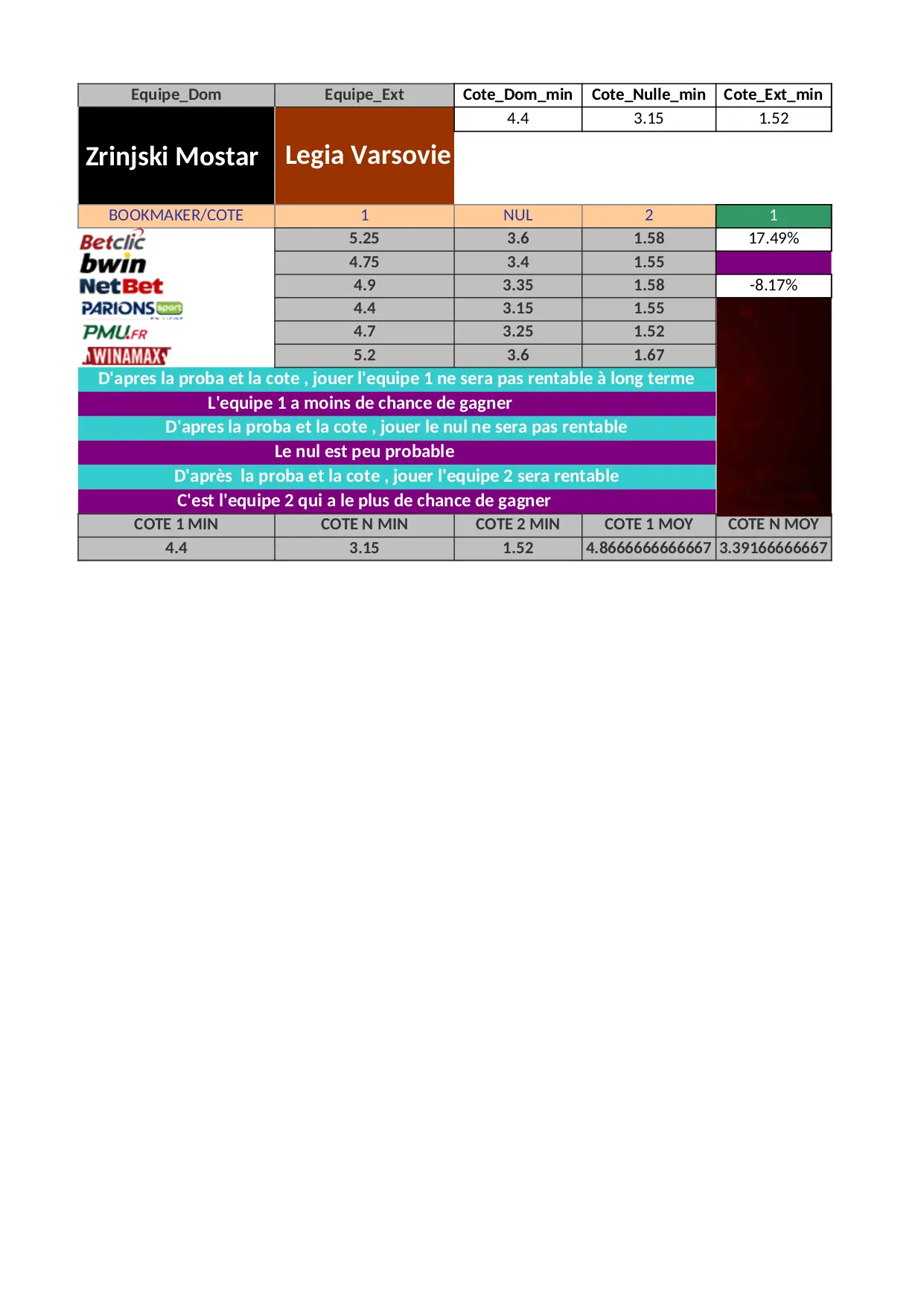 mostar rentable proba gagner apres estimes legia gains jouer varsovie chance bookmaker nulle equipe moyenne
