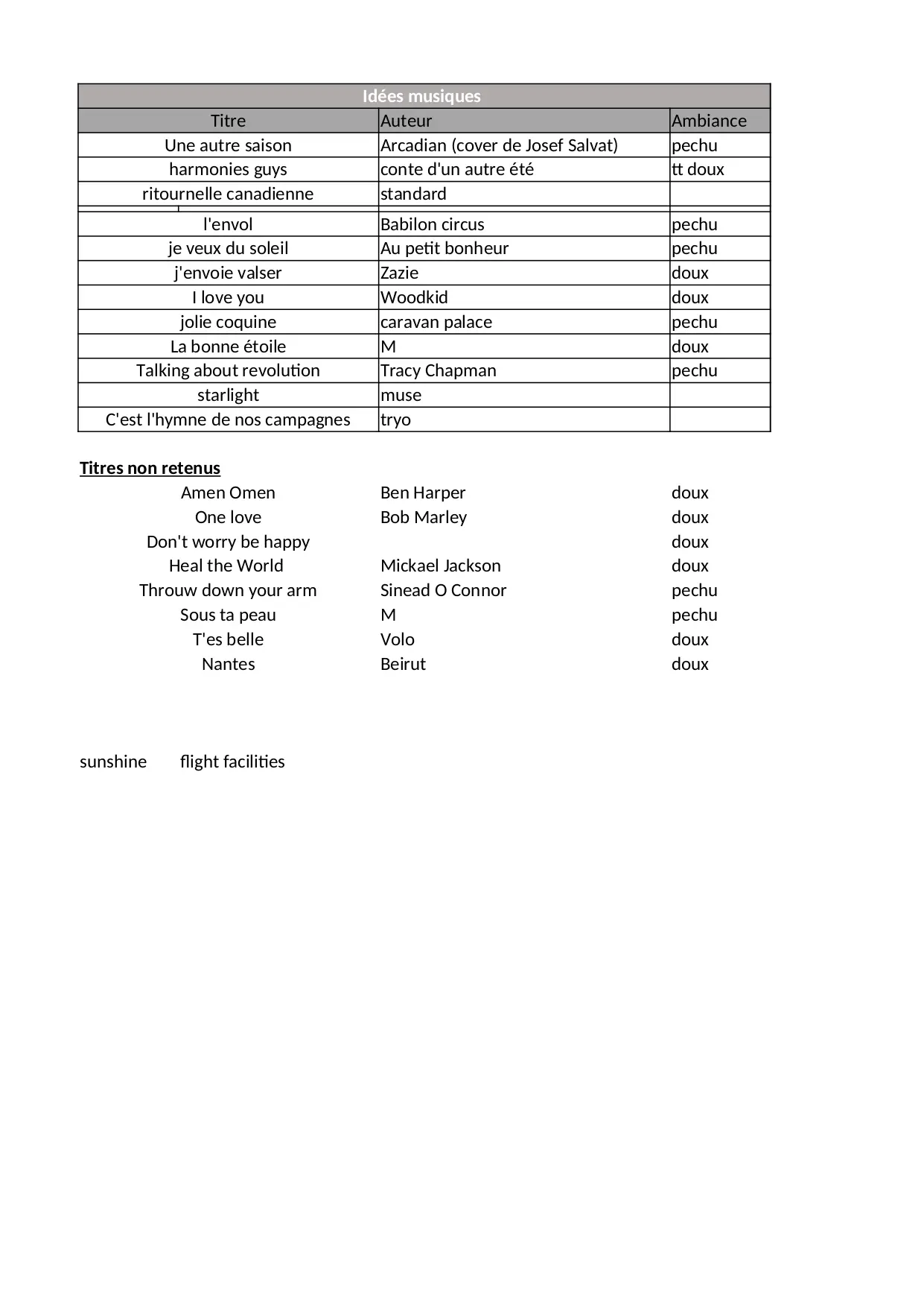 Musique mariage L&A (XLSX)