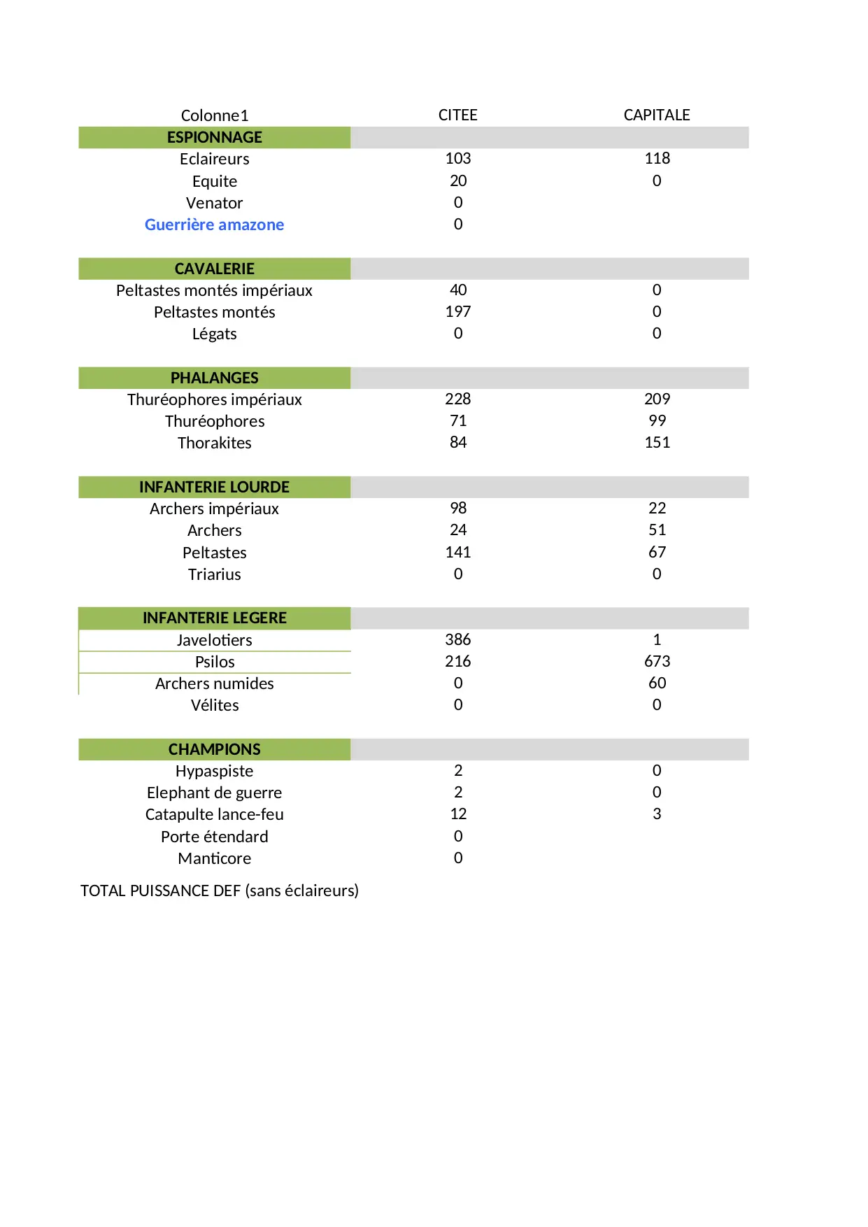 total peltastes lance velites catapulte psilos elephant thureophores imperiaux champions montes infanterie archers guerre hypaspiste
