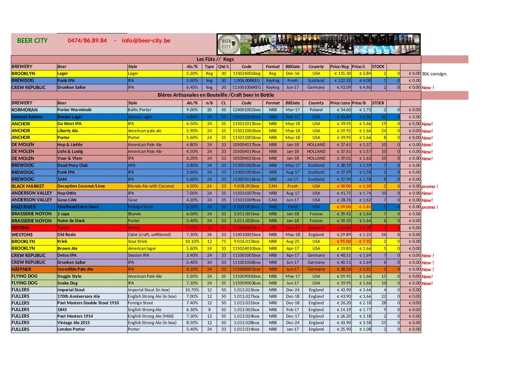 BEER CITY Stock Liste (XLSX)