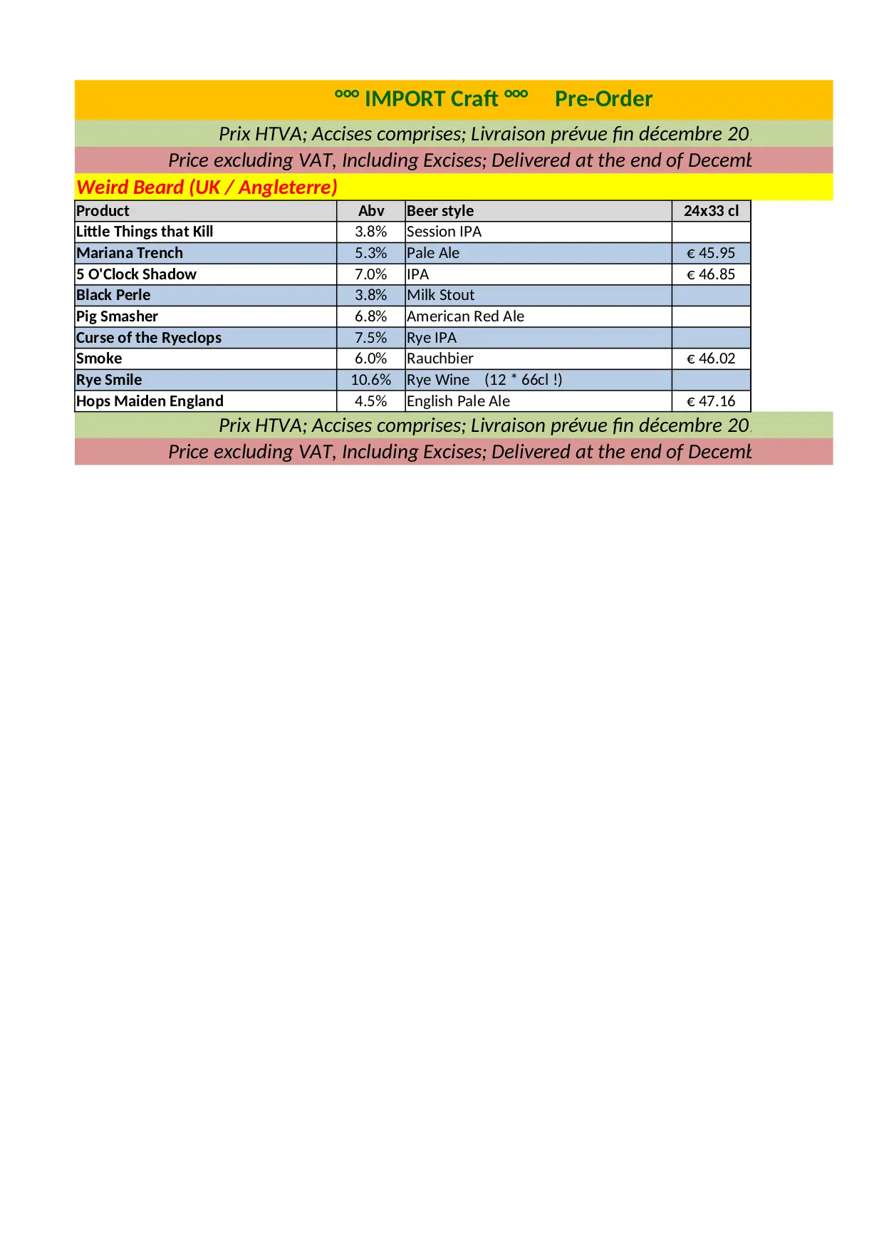price accises excluding order livraison keykeg prevue comprises decembre delivered 24x33 including curse excises december