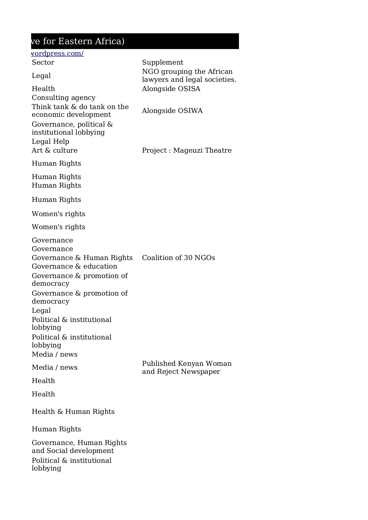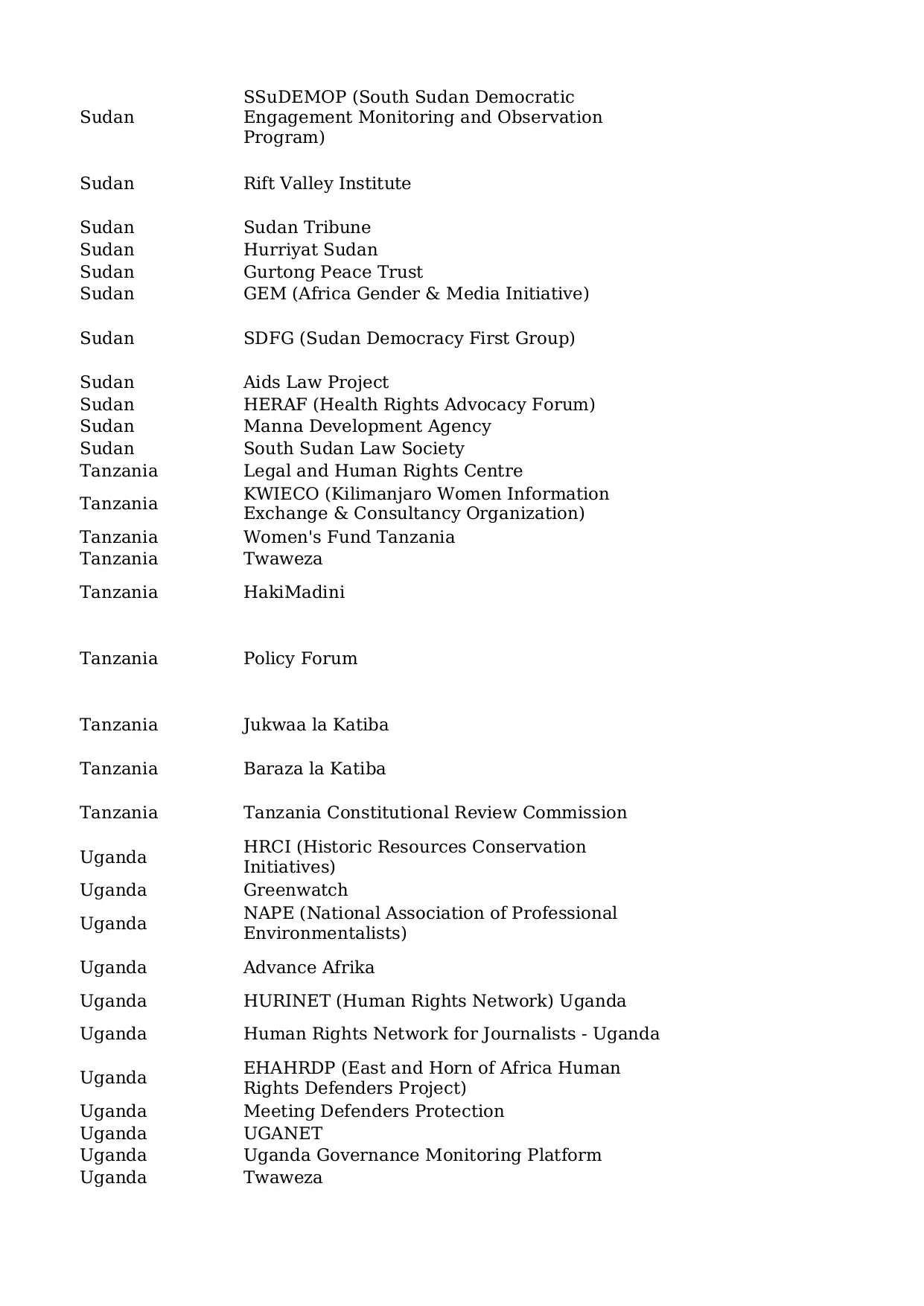 health legal africa kenya political media sudan development governance institutional uganda human tanzania rights lobbying