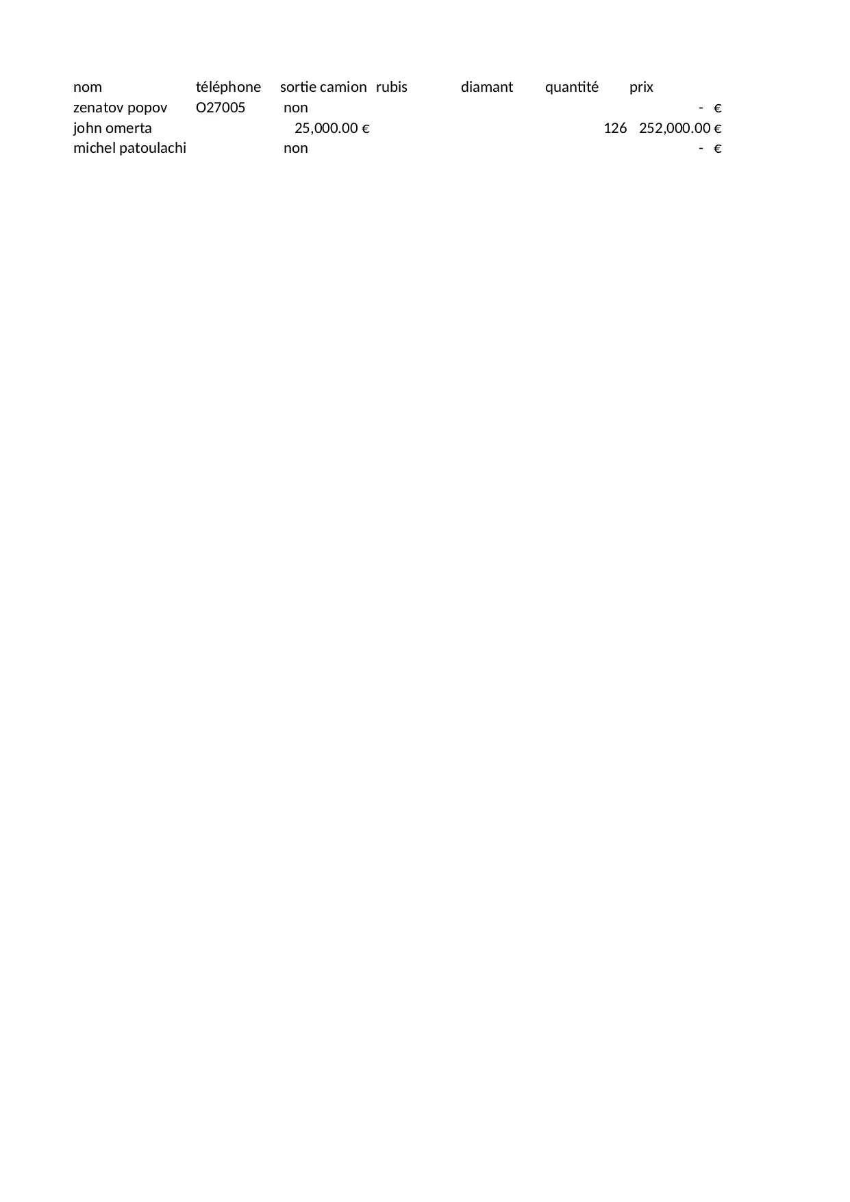 quantite o27005 michel diamant telephone zenatov rubis popov patoulachi camion omerta sortie