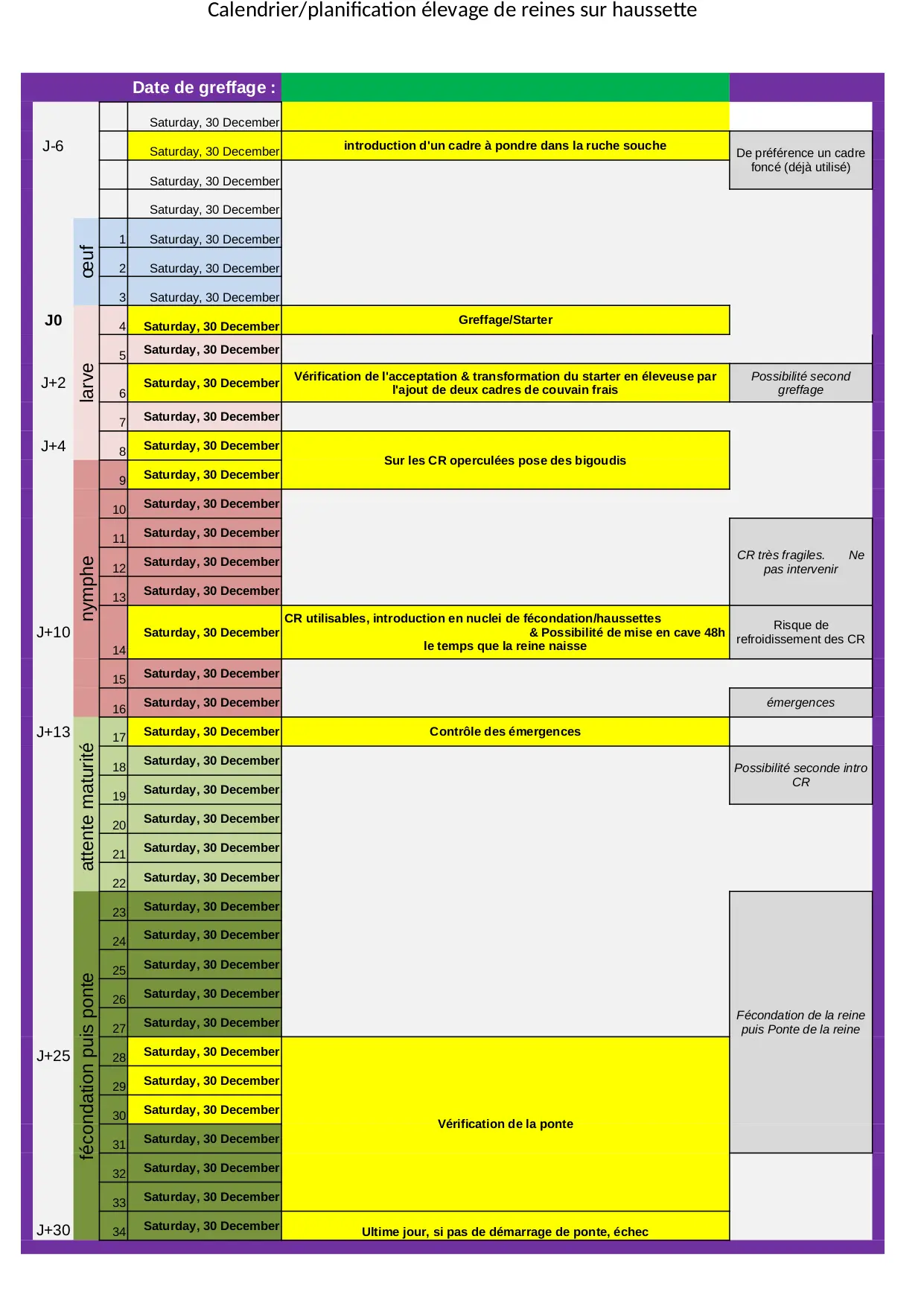 verification cadre haussettes ponte naisse starter fecondation greffage risque reine introduction temps emergences attente possibilite