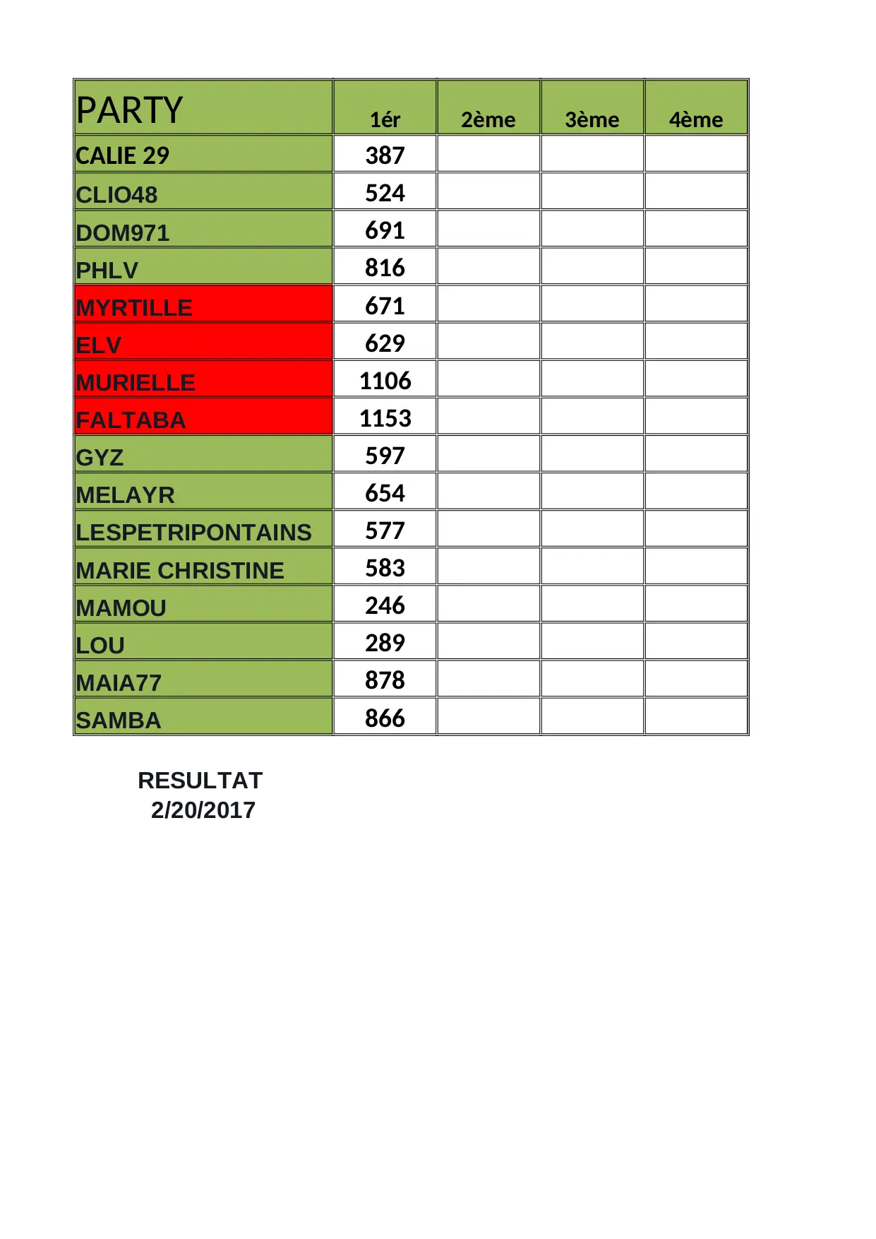 melayr myrtille maia77 mamou marie christine totaux murielle samba 10eme party calie clio48 faltaba dom971