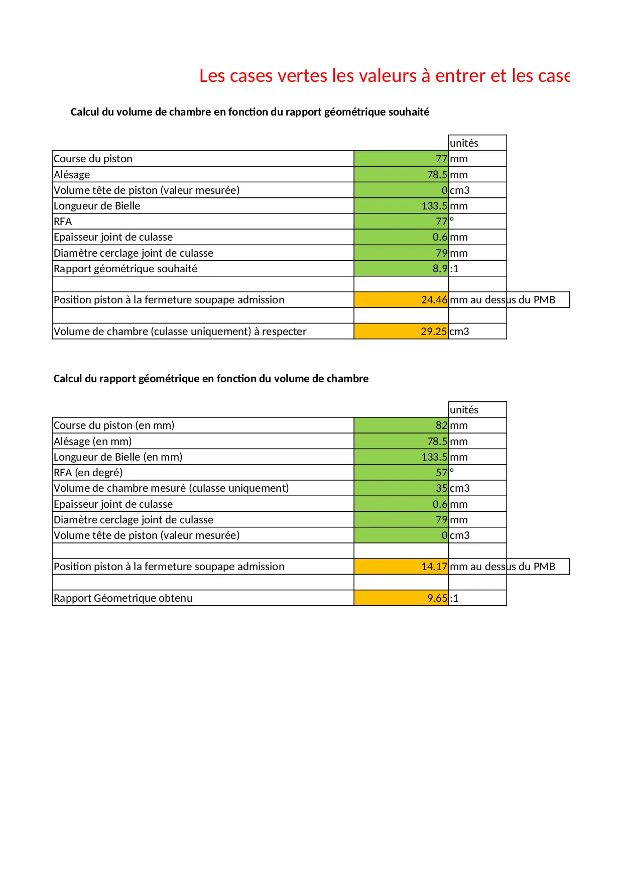 valeur joint alesage chambre volume epaisseur rapport piston uniquement course culasse geometrique volumetrique souhaite unites