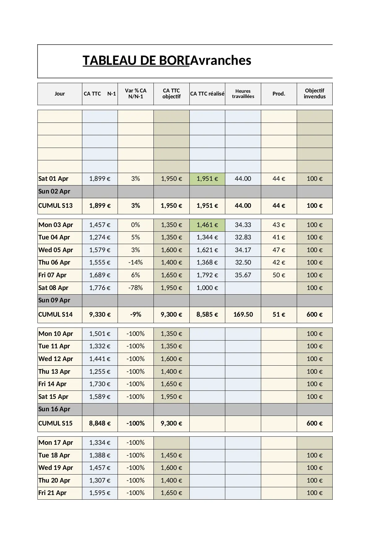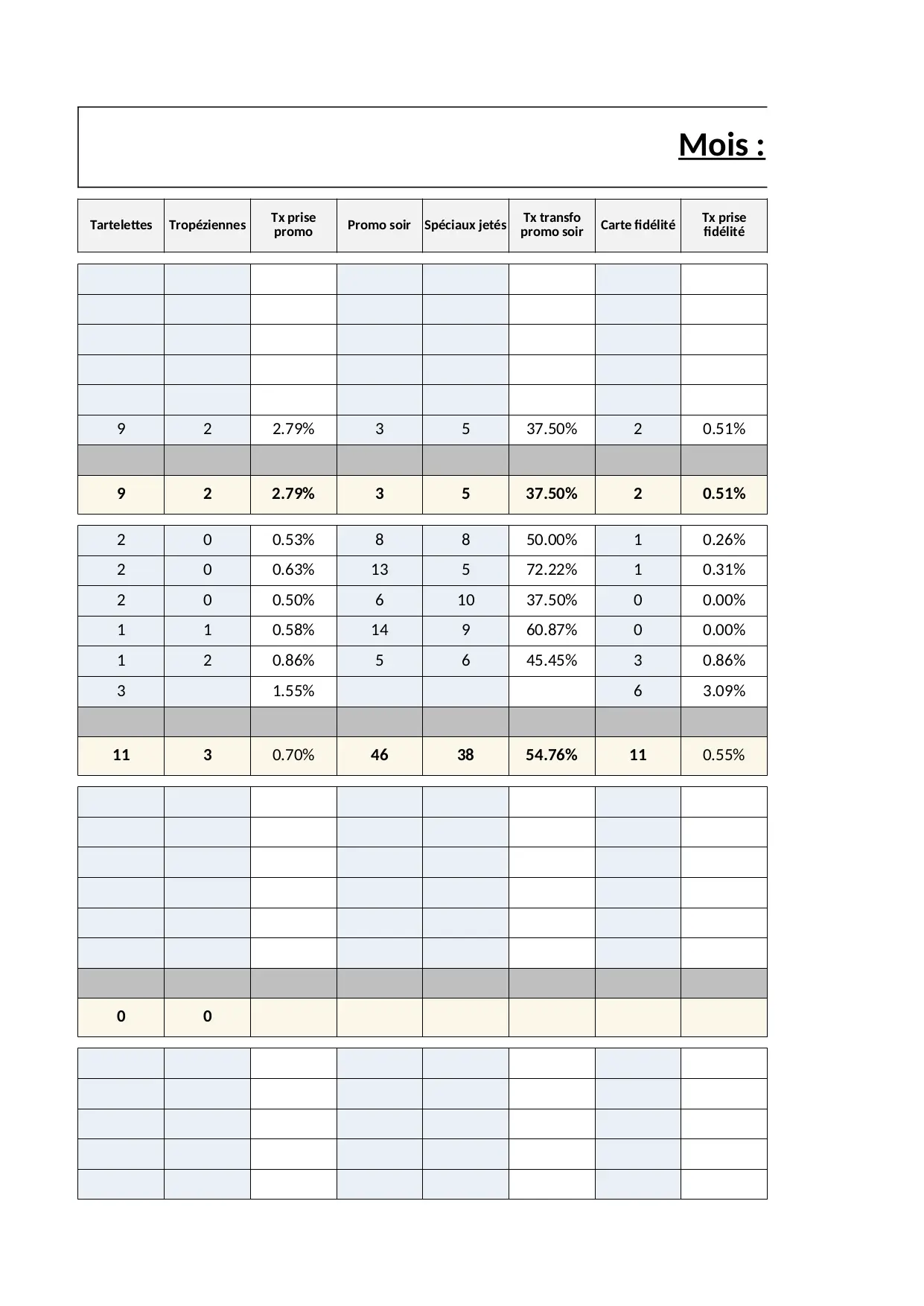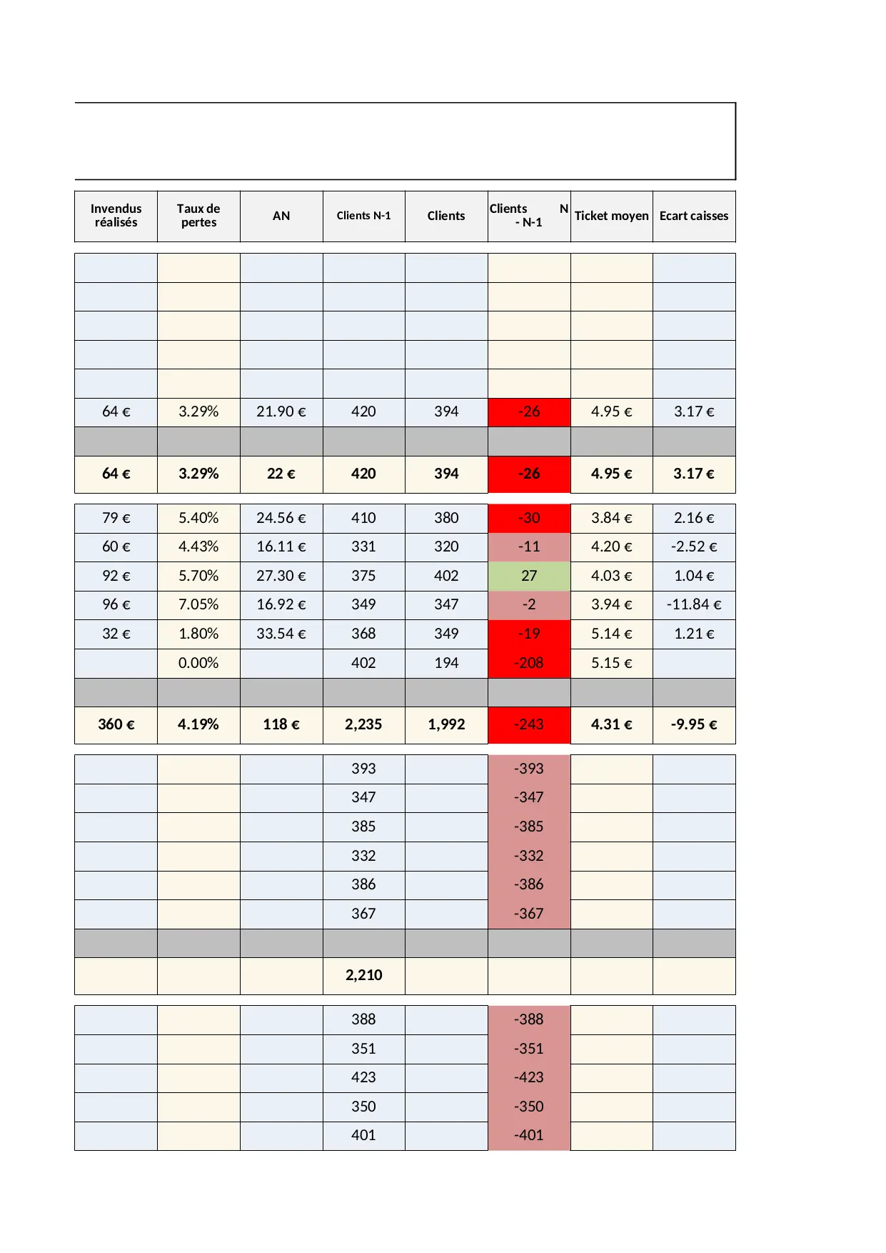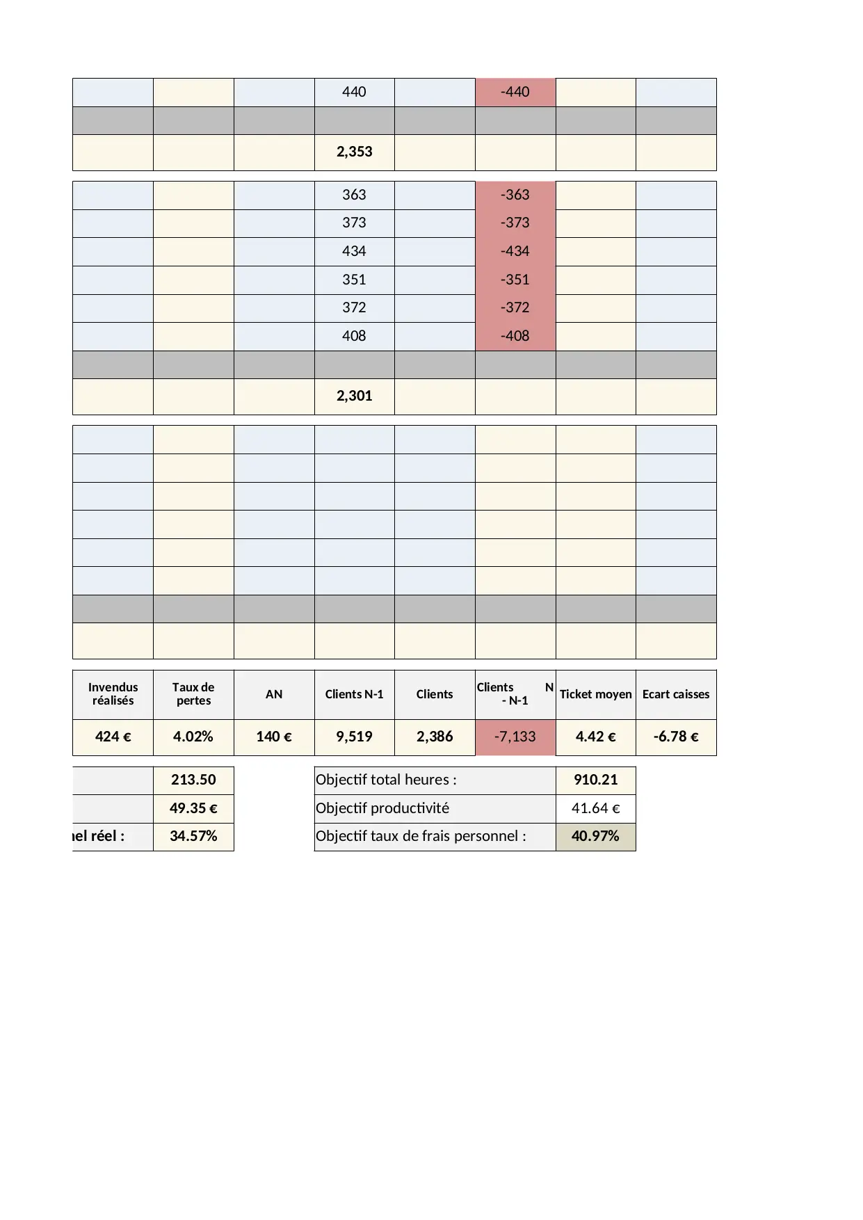 moyen cumul promo fidelite previsionnel frais clients pertes invendus journalier productivite prise personnel objectif heures