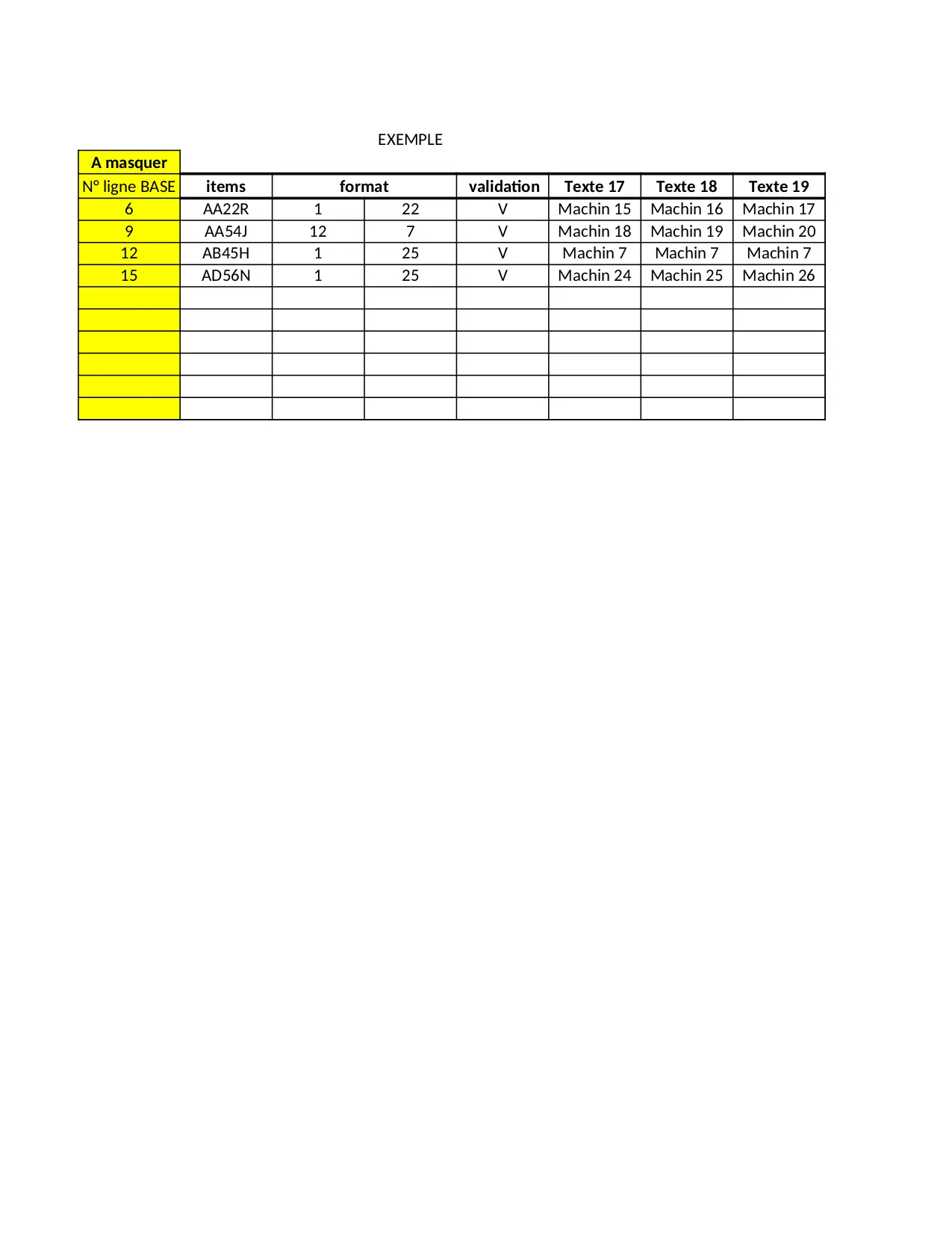 ligne validation ab45h aa54j masquer machin format ad56n items aa22r texte exemple