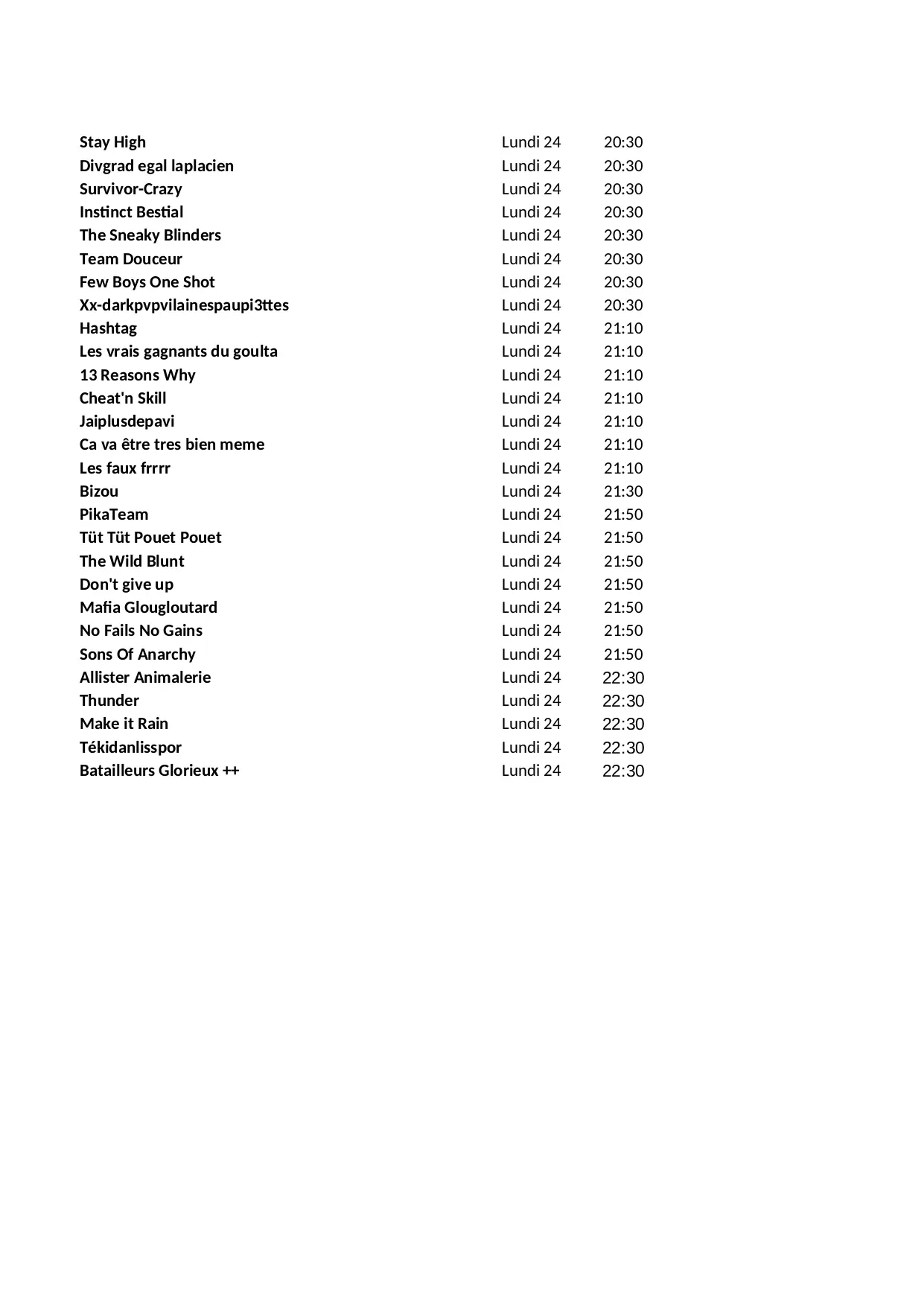 frrrr lundi legitime defonce appeler pikateam pouet random mafia absolute mousse bisounours turfuristes blunt bizou