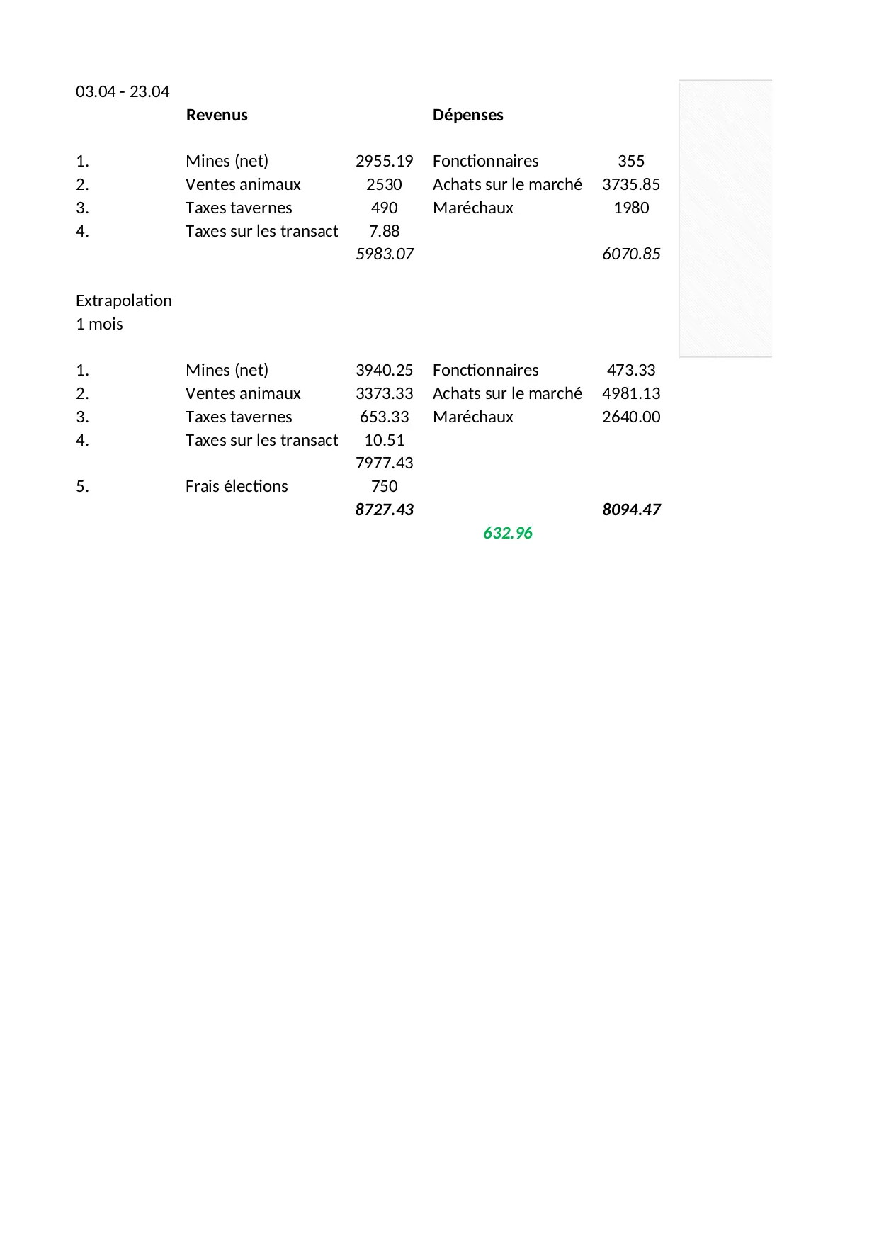 ventes marche animaux fonctionnaires achats mines tavernes elections frais extrapolation taxes transactions marechaux revenus depenses