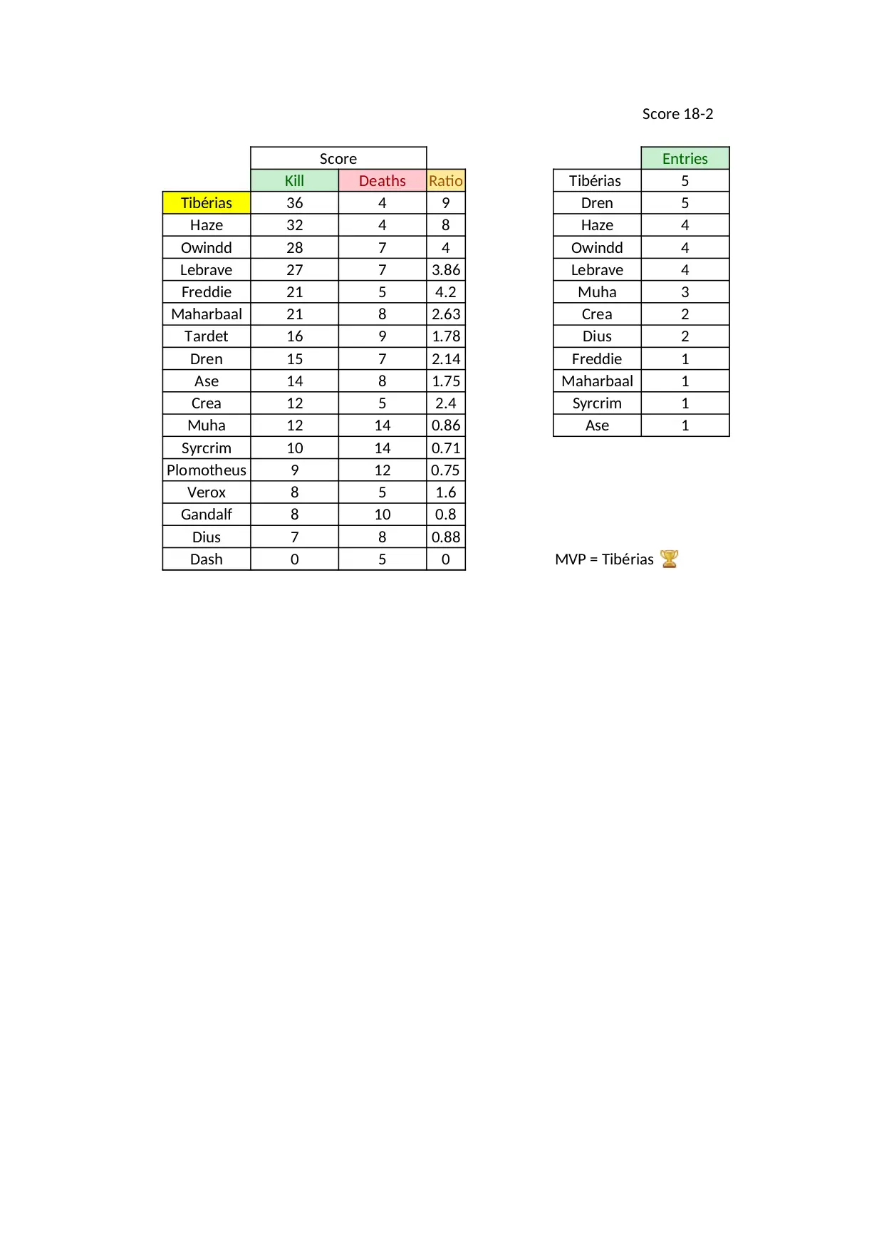 average deaths maximou match lebrave firstblood morts kills tiberias nombre ratio number entries moyenne freddie