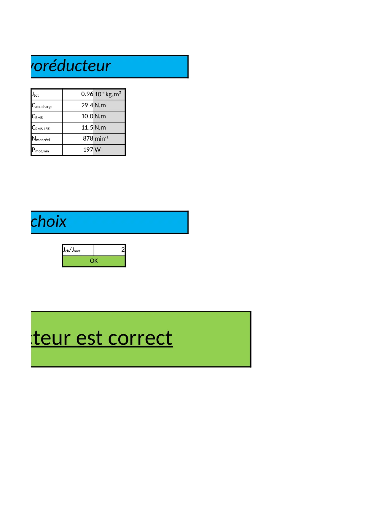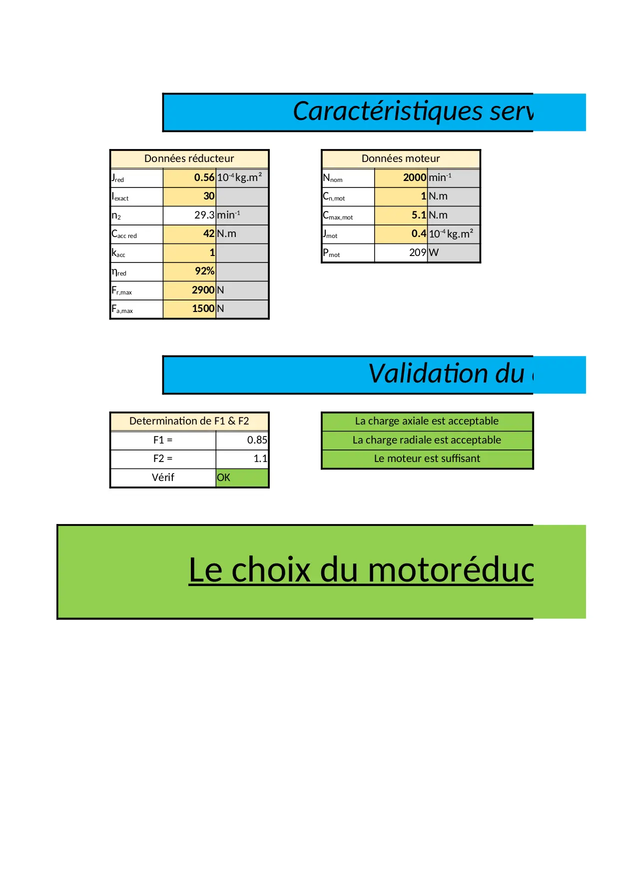 charge reducteur validation suffisant moteur axiale donnees cycle iexact motoreducteur radiale determination choix acceptable verif