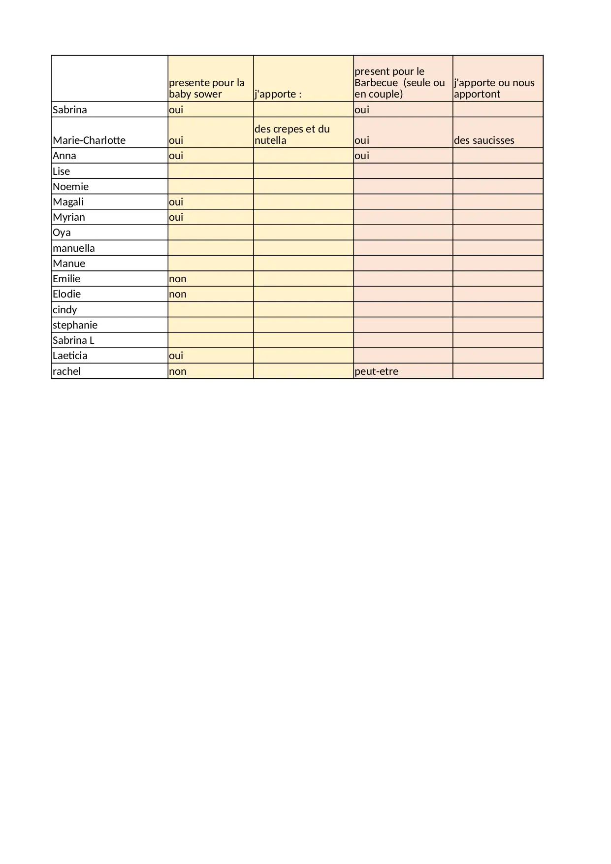 baby shower et barbecue (XLSX)
