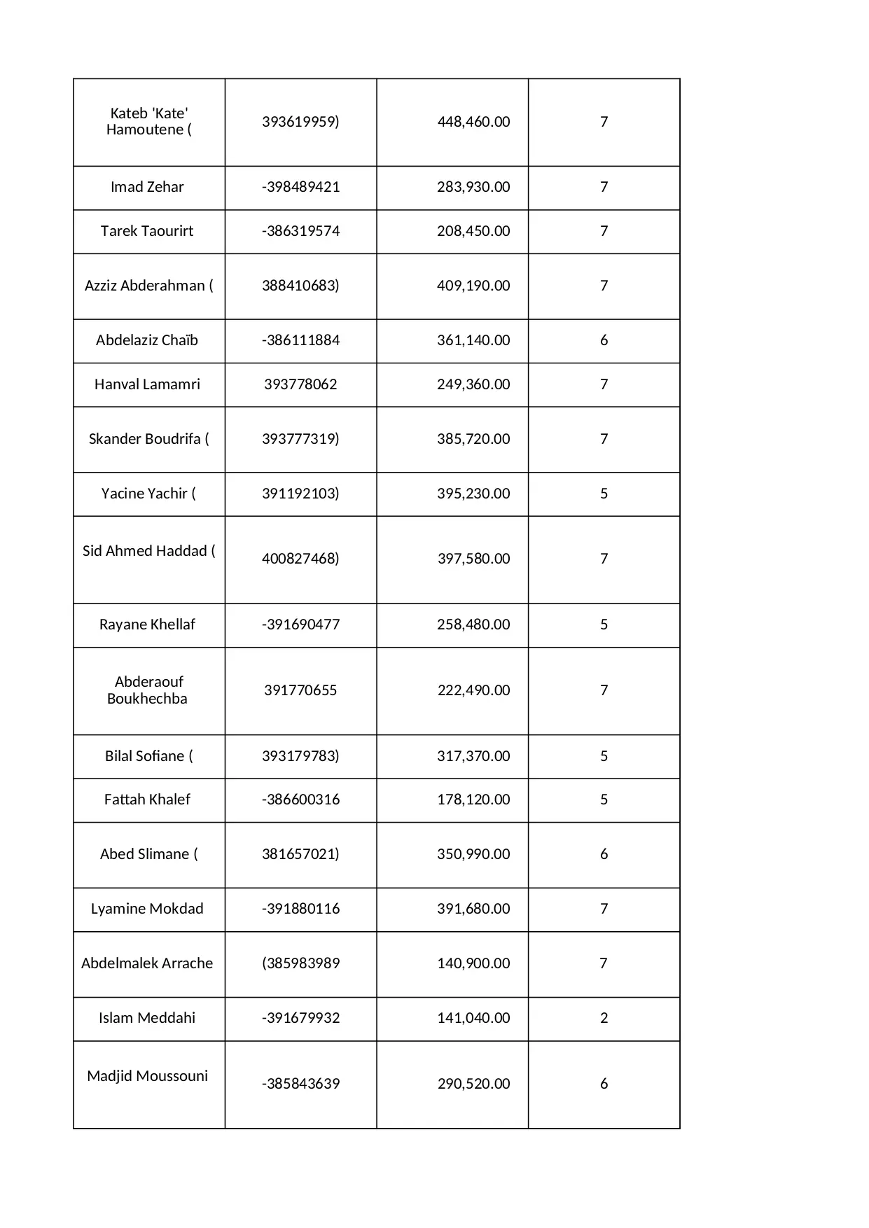 lyamine mokdad abderahman slimane fattah forme khalef yacine sofiane ahmed bilal rapide boudrifa abdelmalek skander