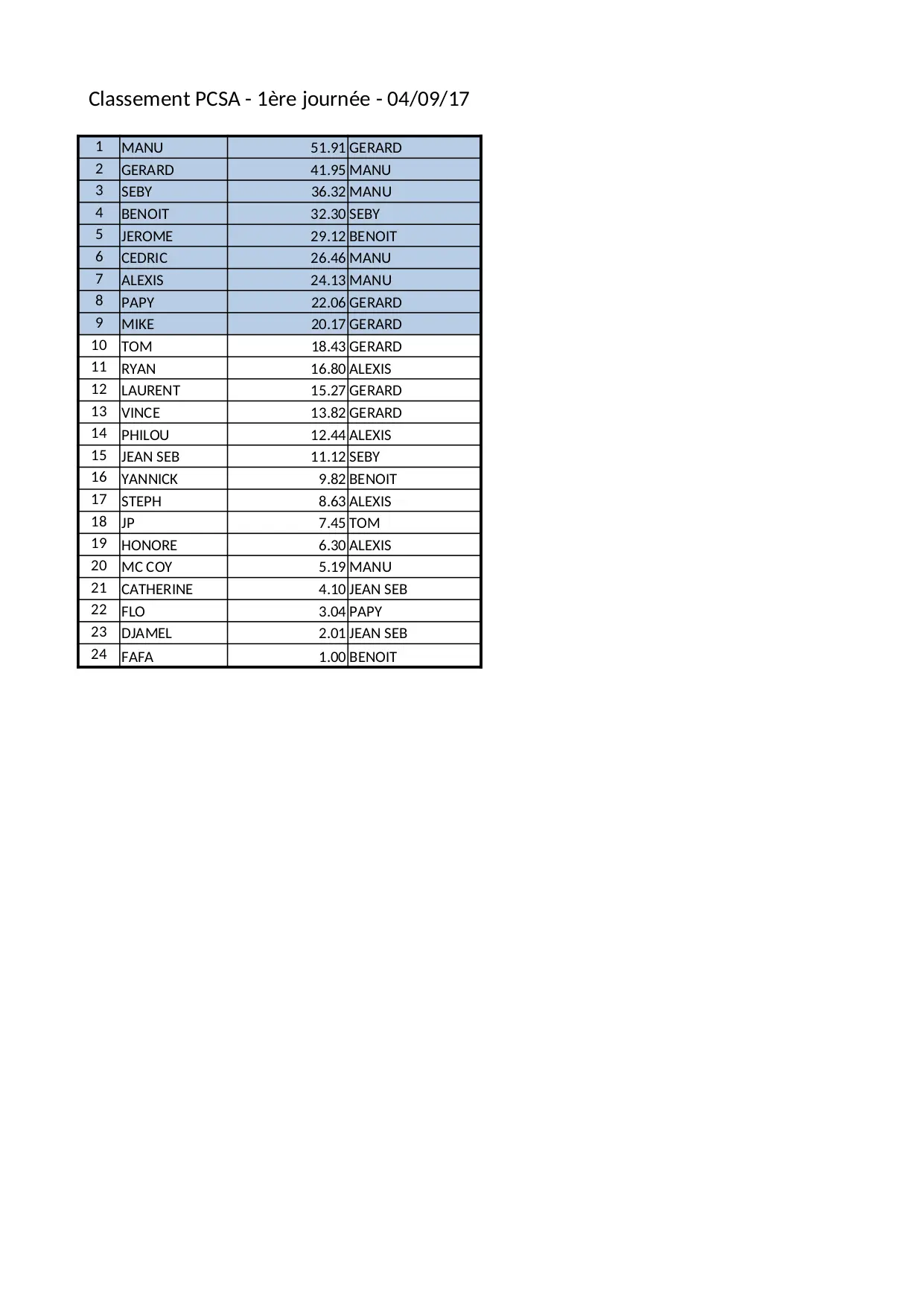 yannick philou laurent cedric jerome honore vince steph alexis classement djamel journee benoit catherine gerard