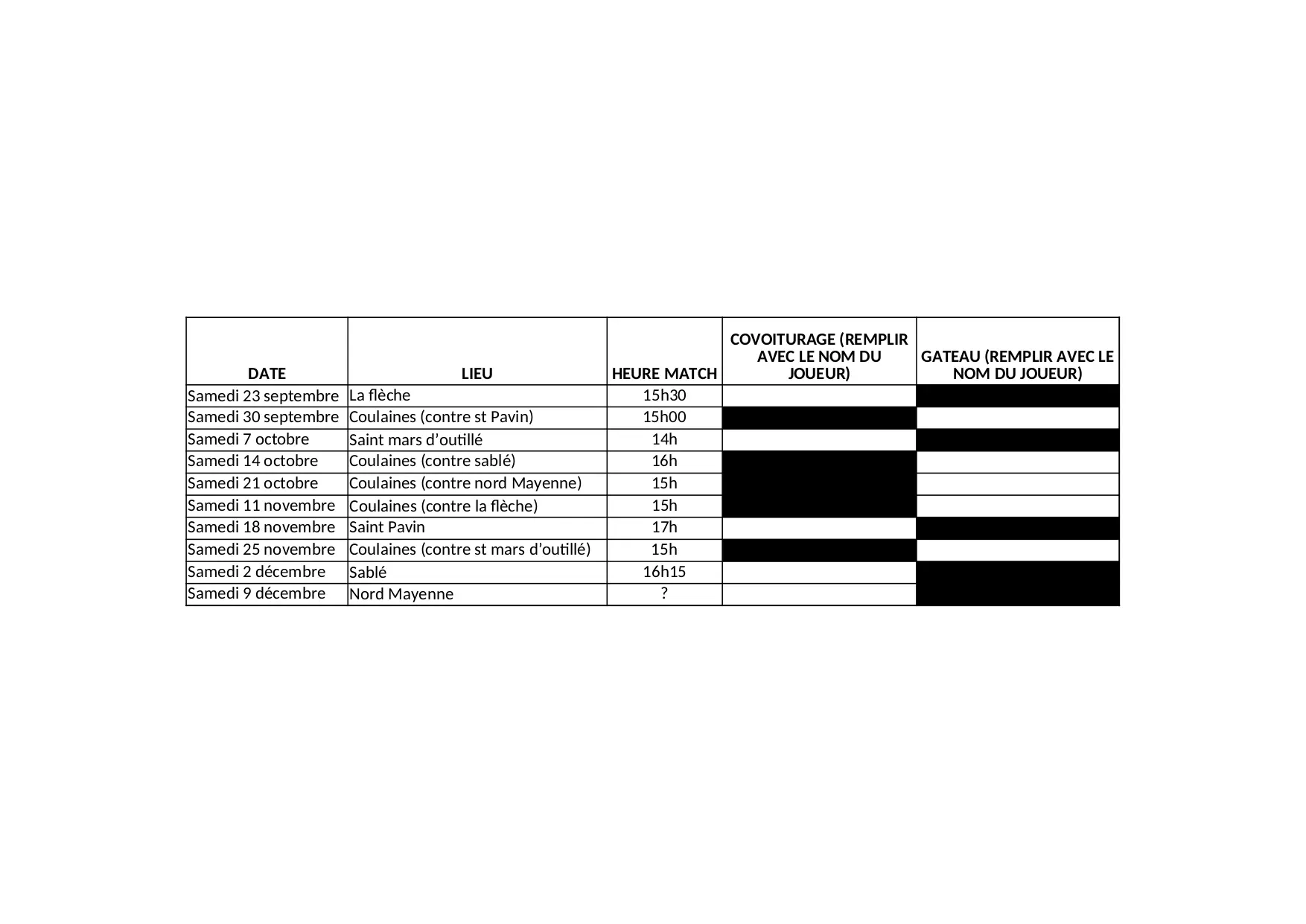remplir coulaines sable fleche joueur mayenne samedi septembre decembre contre pavin outille saint octobre novembre