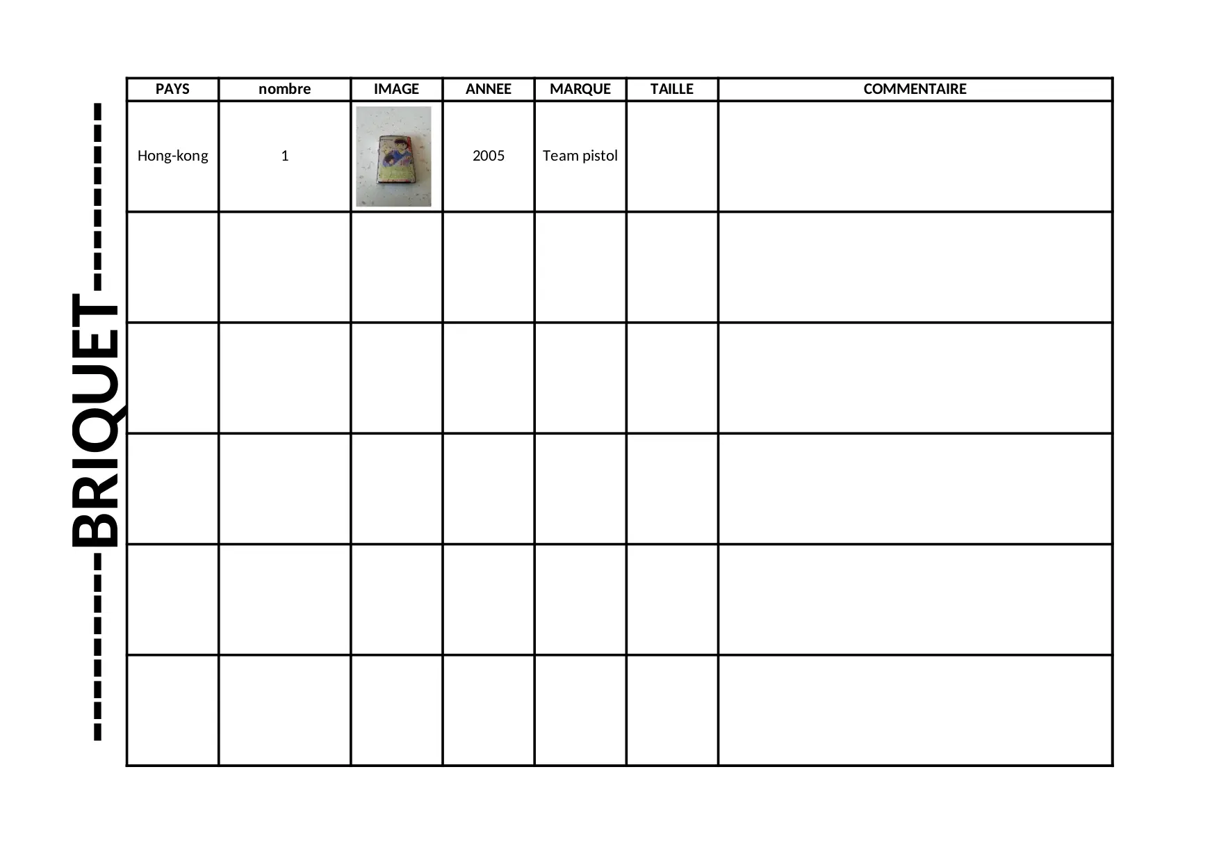 taille annee marque nombre commentaire pistol image briquet