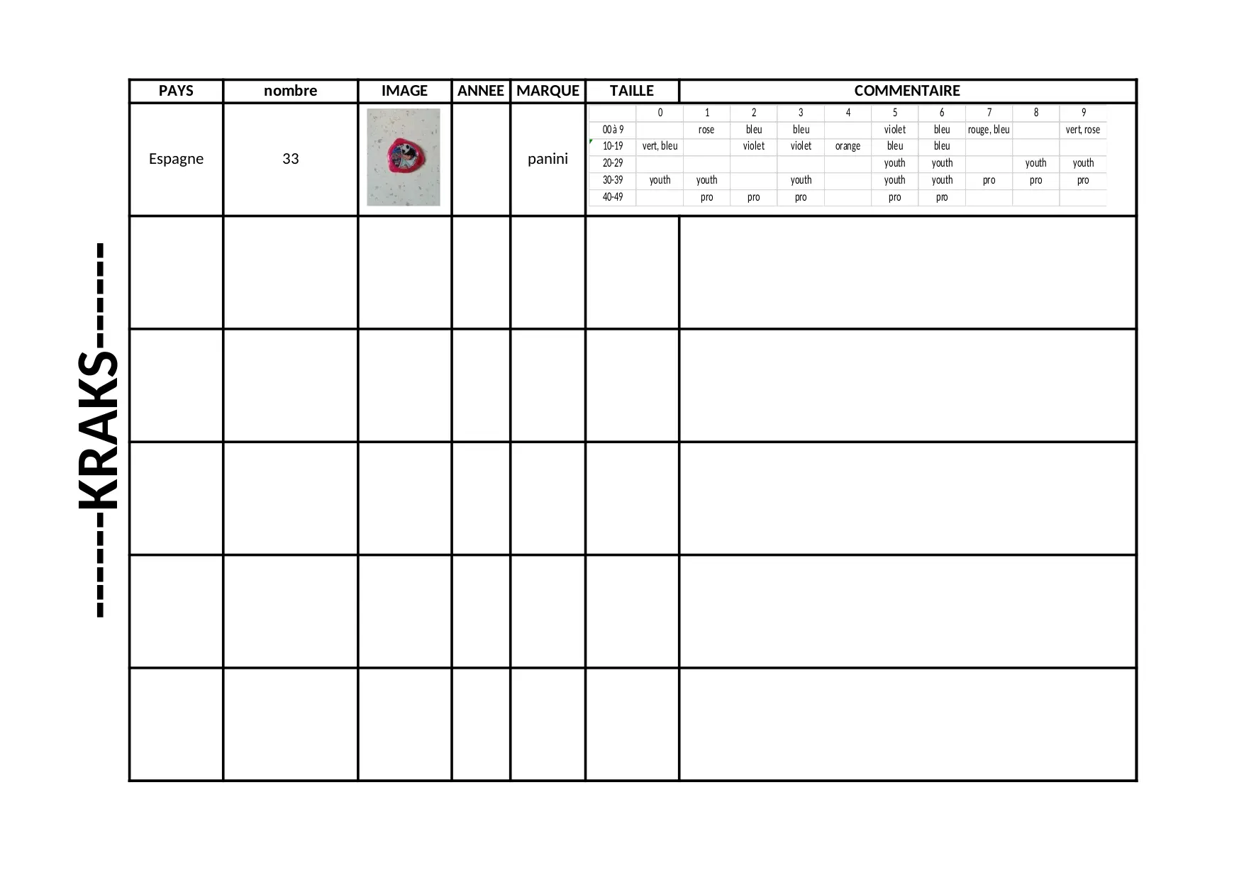 image marque kraks nombre panini espagne annee taille commentaire