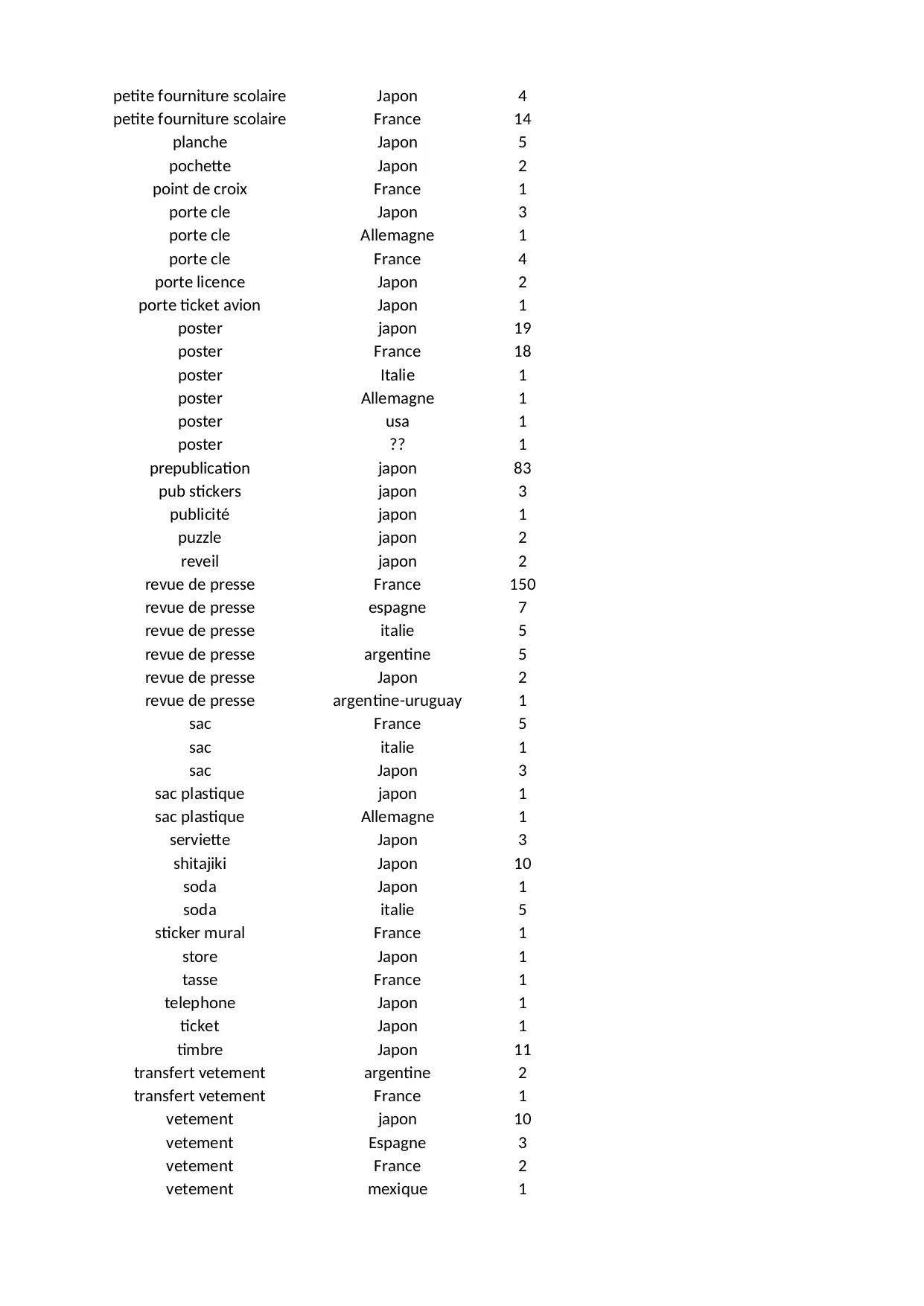 revue autocollant espagne allemagne video carte italie coffret france vetement album japon manga presse argentine