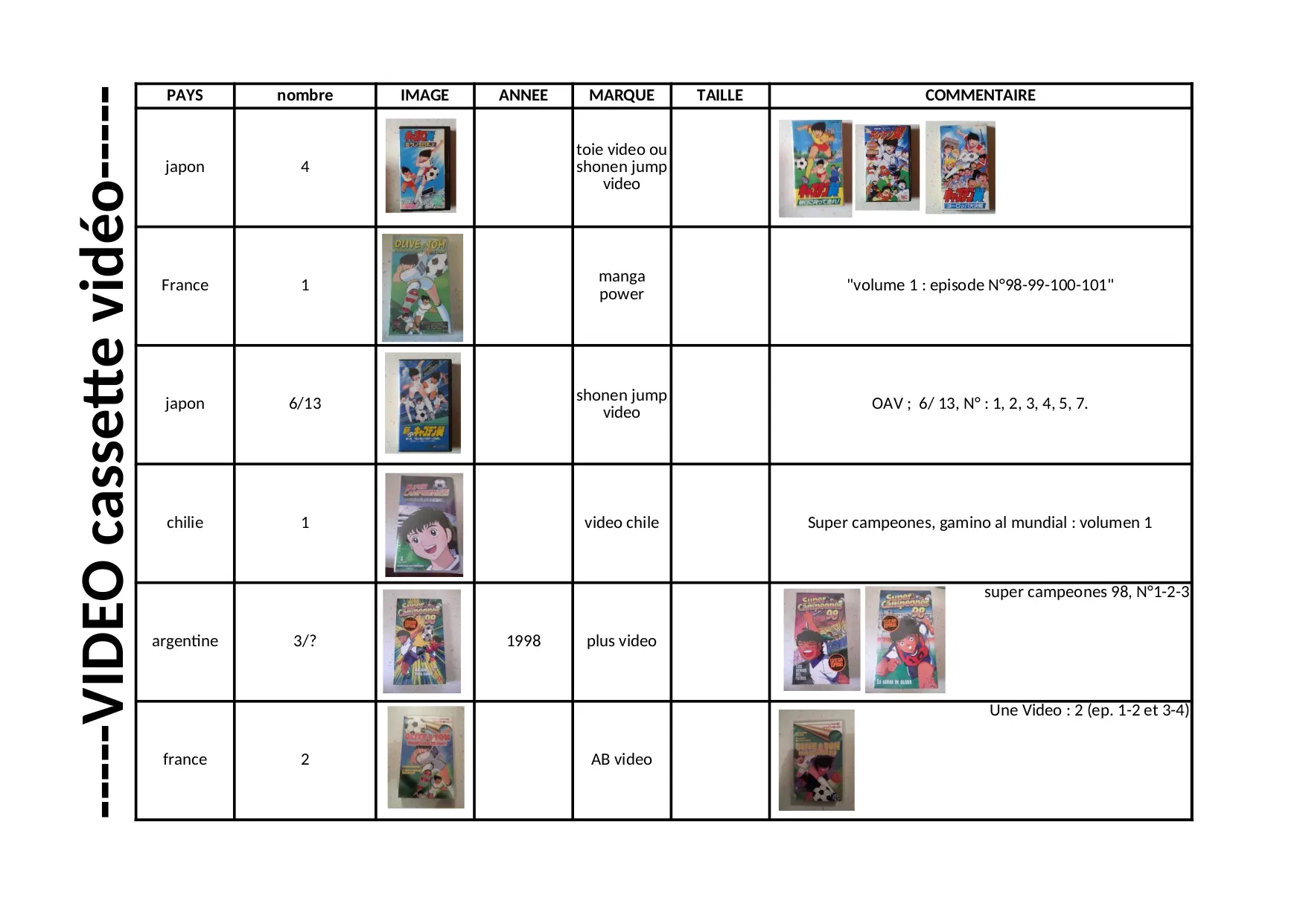 chacun france nombre total video cassettes commentaire coffret annee cassette marque taille videos image