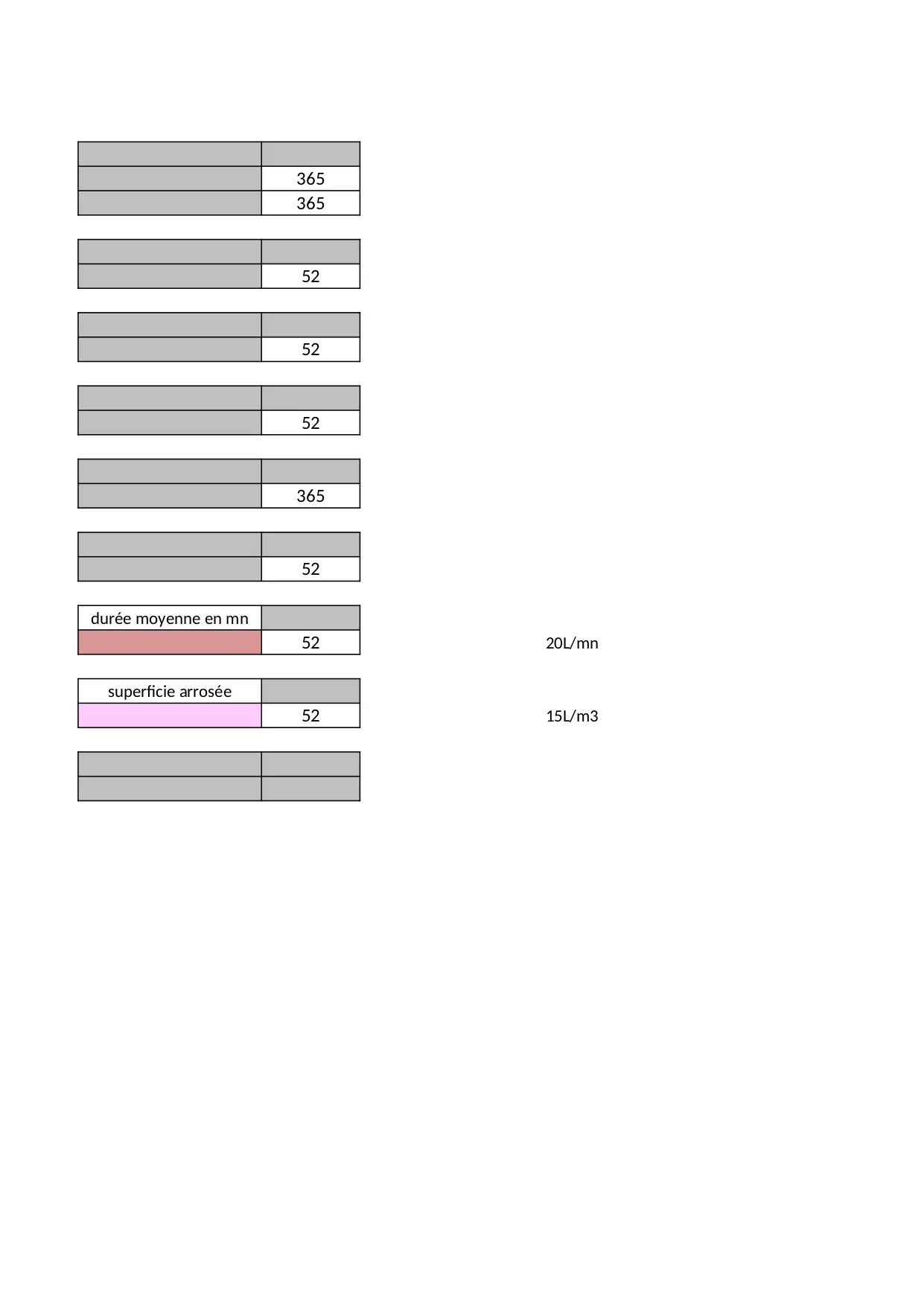 consommation chasse vaisselle linge quantite semaine annuelle voiture arrosee superficie arrosage moyenne douche lavage duree