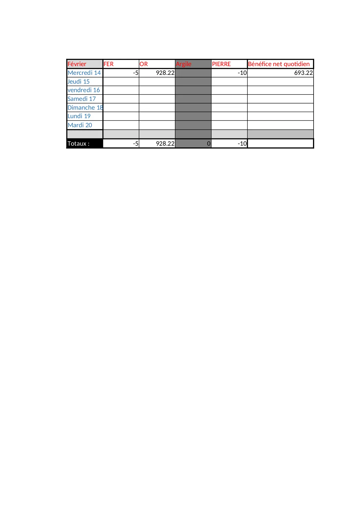 salaires carriere fevrier journalier pierre mercredi salaire total entretien benefice argile production totaux