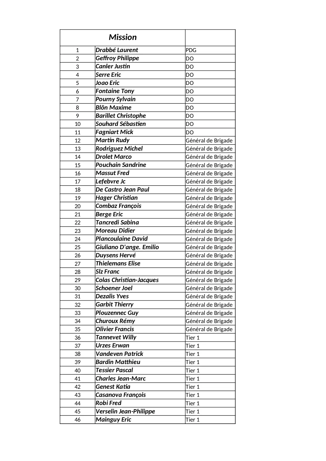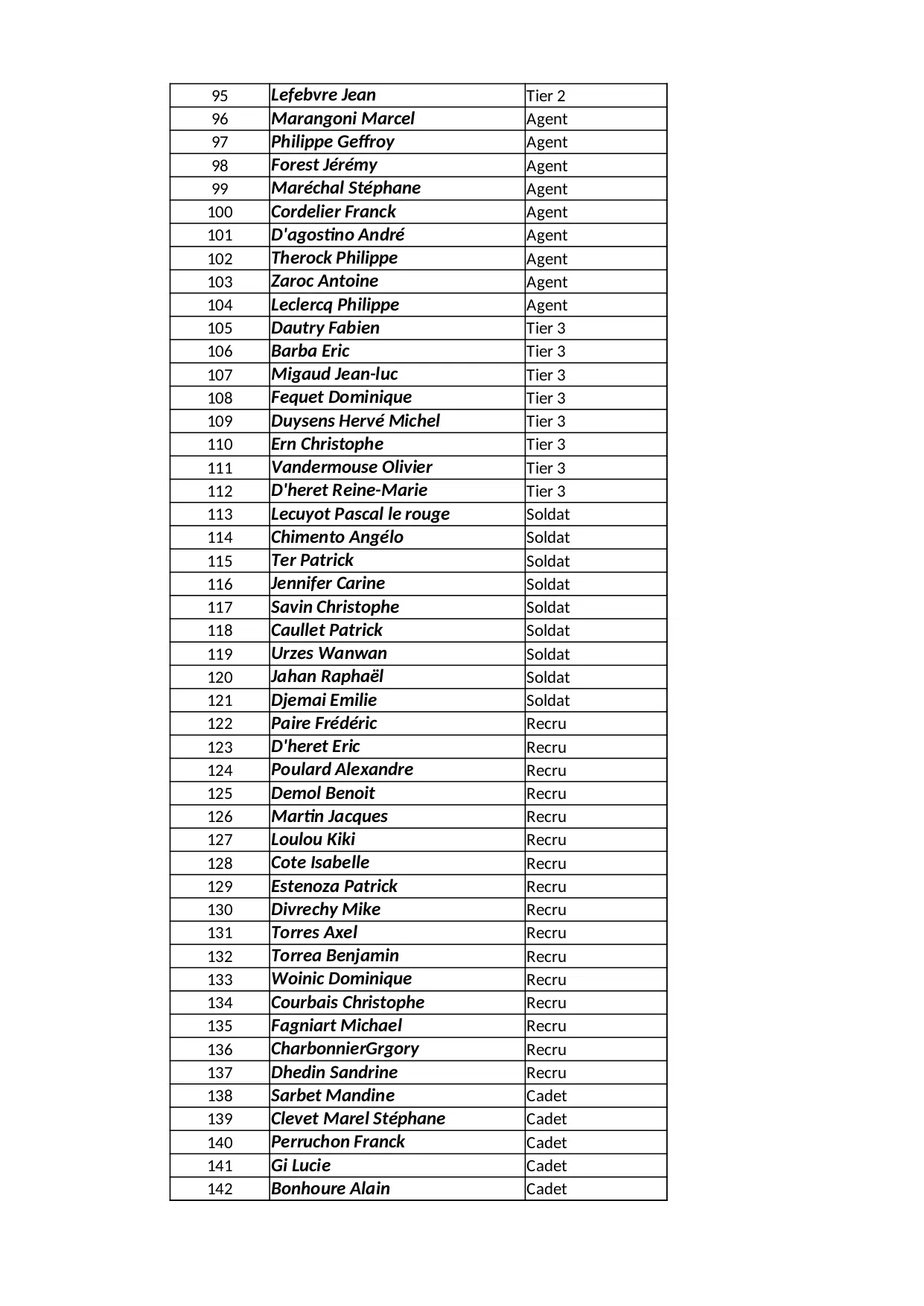 recru soldat martin emissaire general pascal christophe michel david agent brigade patrick philippe cadet francois