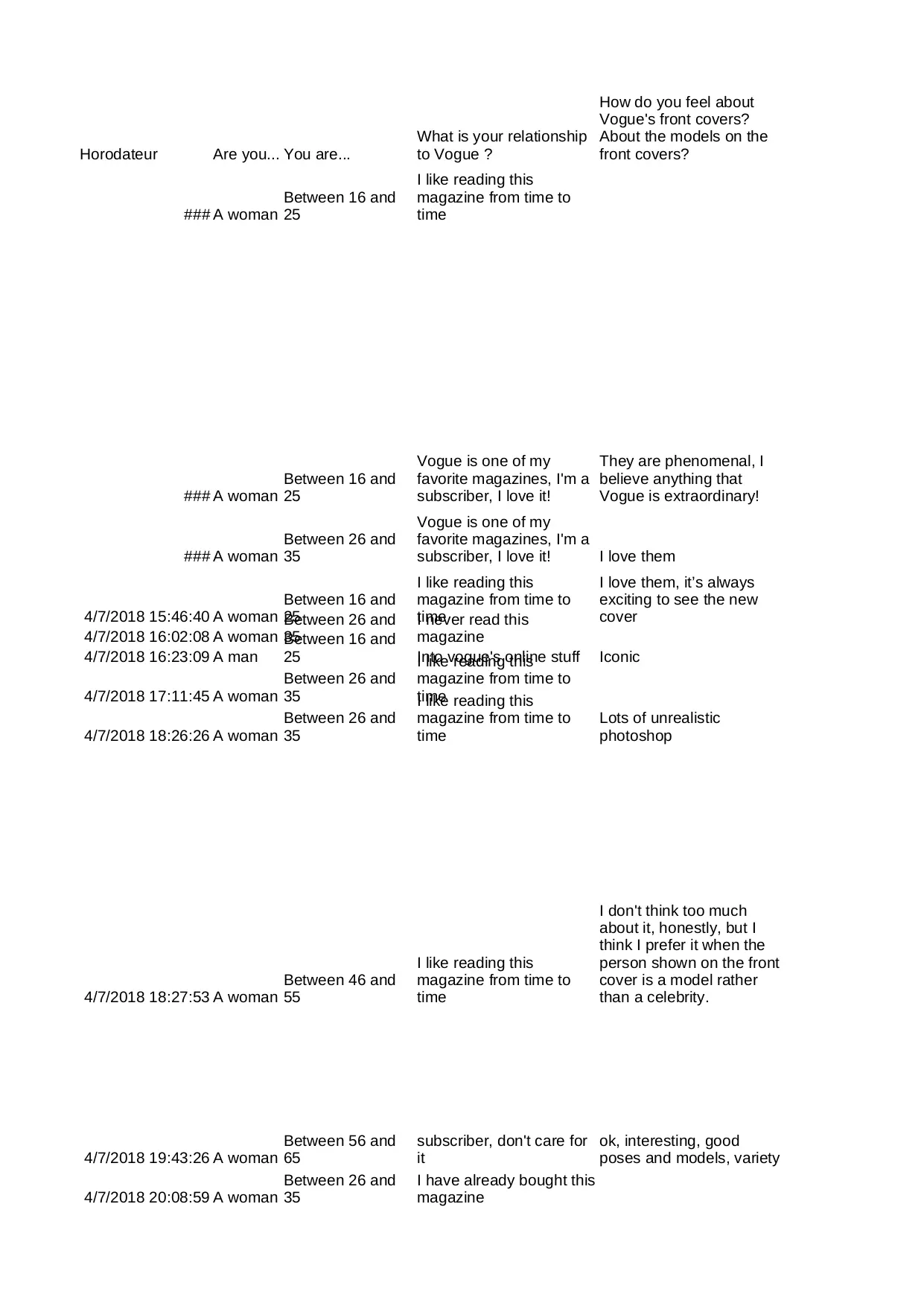 Fashion magazines and communication (réponses) (XLSX)